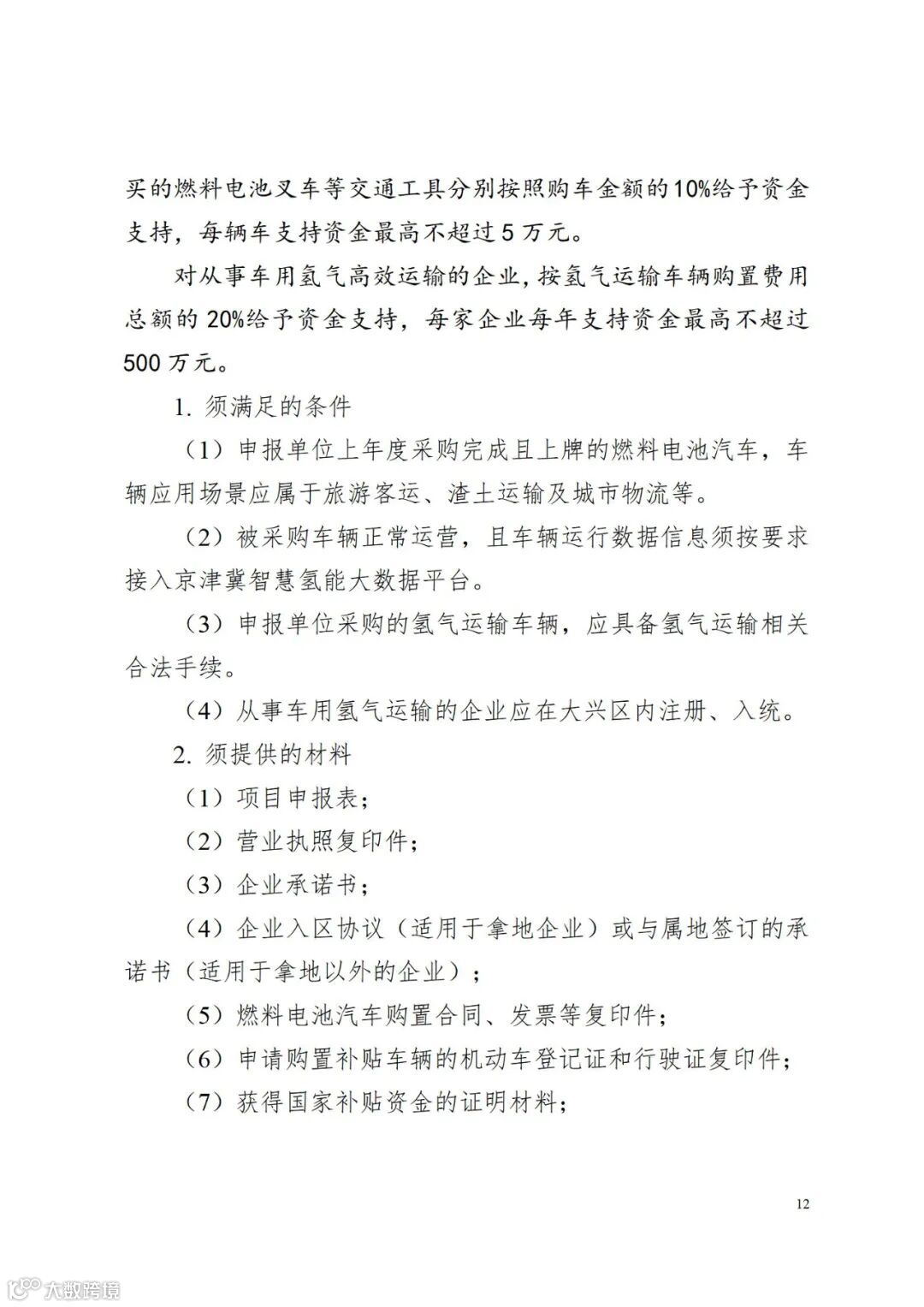 具体申报条件详见《大兴区促进氢能产业发展暂行办法(2022年修订版)》申报指南。对符合本办法规定且同时符合大兴区其他支持政策的,按照“不重复支持”的原则予以支持,另有规定的除外。