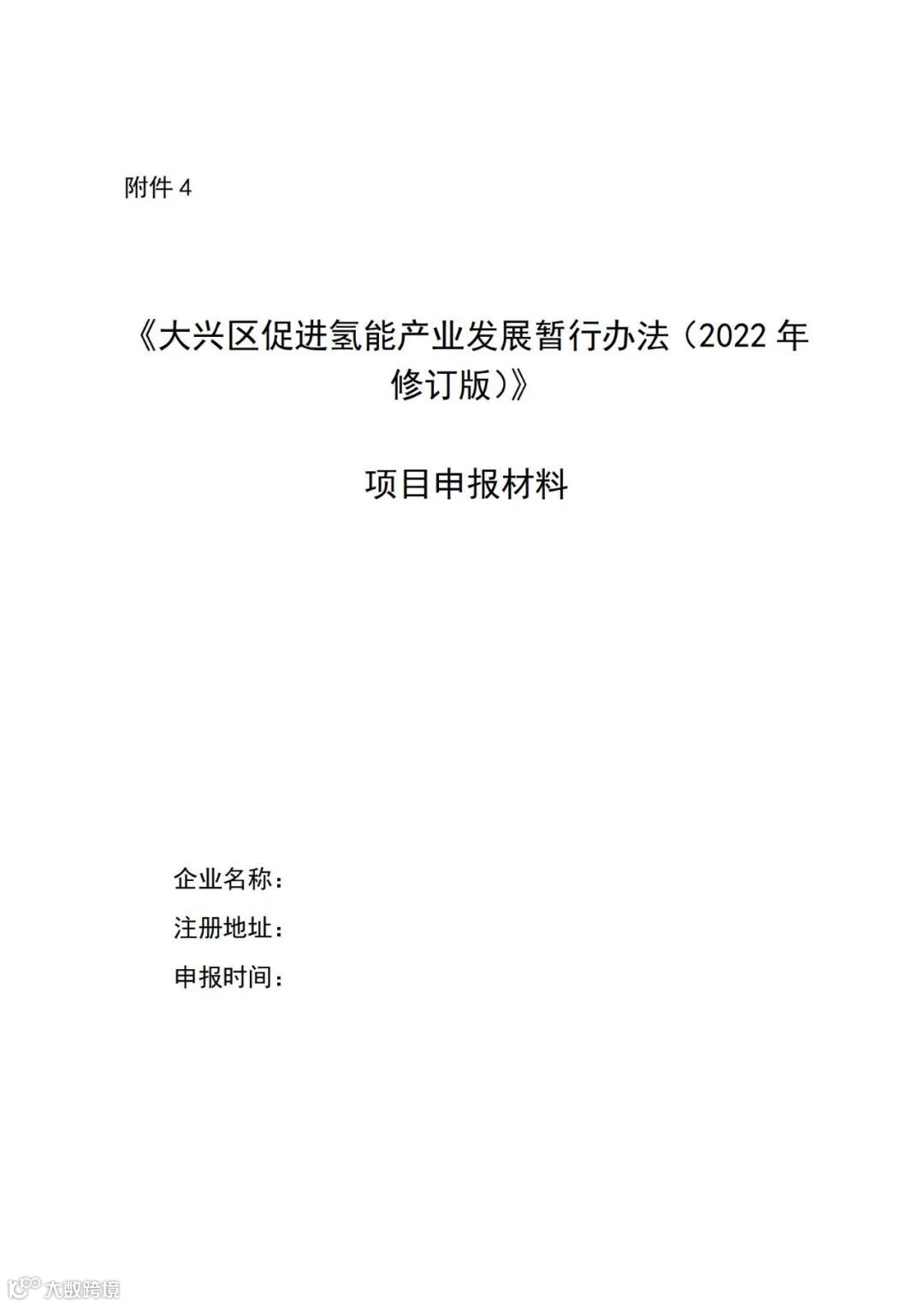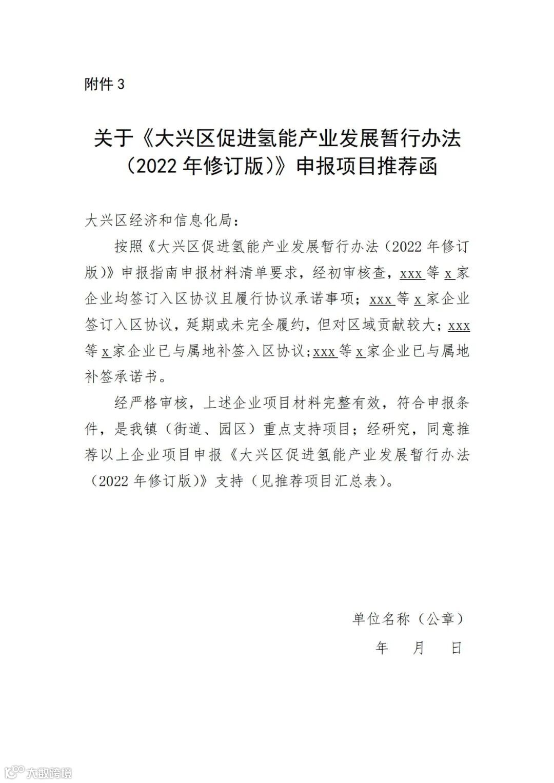 北京市大兴区经济和信息化局关于申报《大兴区促进氢能产业发展暂行办法 (2022年修订版)》项目的通知