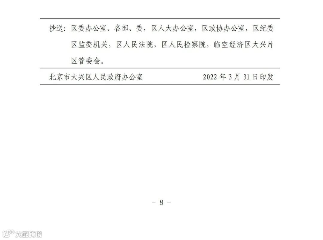 各镇人民政府,各街道办事处,临空区、生物医药基地、大兴经开区: