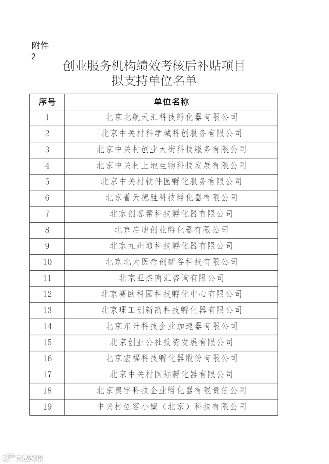 2.创业服务机构绩效考核后补助项目拟支持单位名单