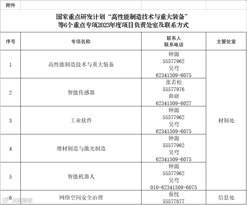 关于转发国家重点研发计划“高性能制造技术与重大装备” 等6个重点专项2023年度项目申报要求文件的通知