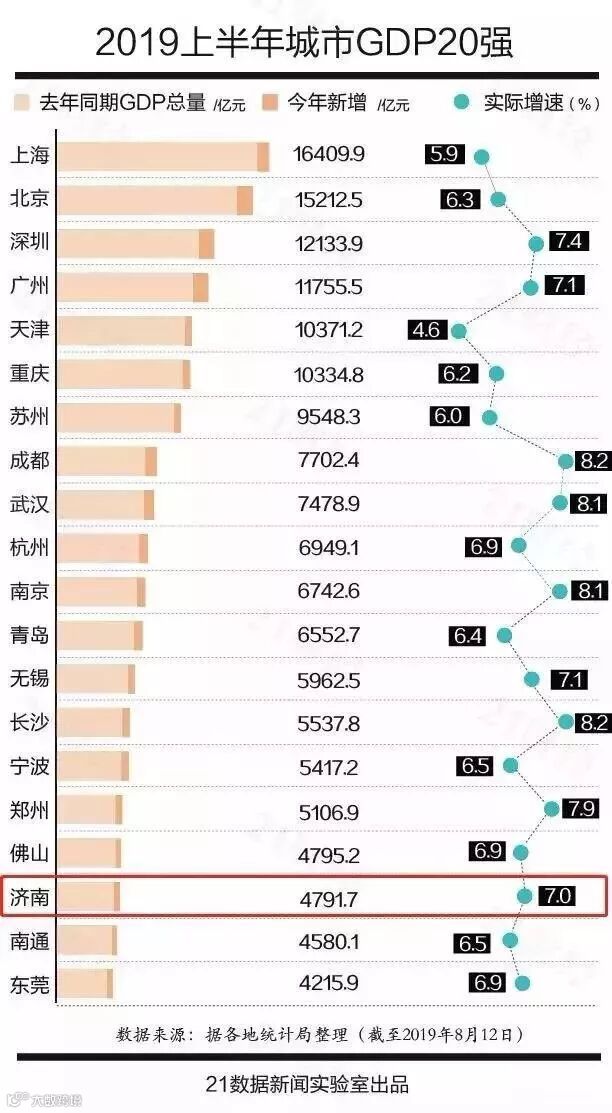 “新济南”跻身20强!2019上半年城市GDP排名出炉