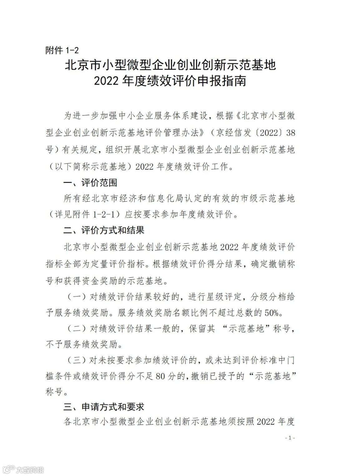 附件1-2.北京市小型微型企业创业创新示范基地2022年度绩效评价申报指南