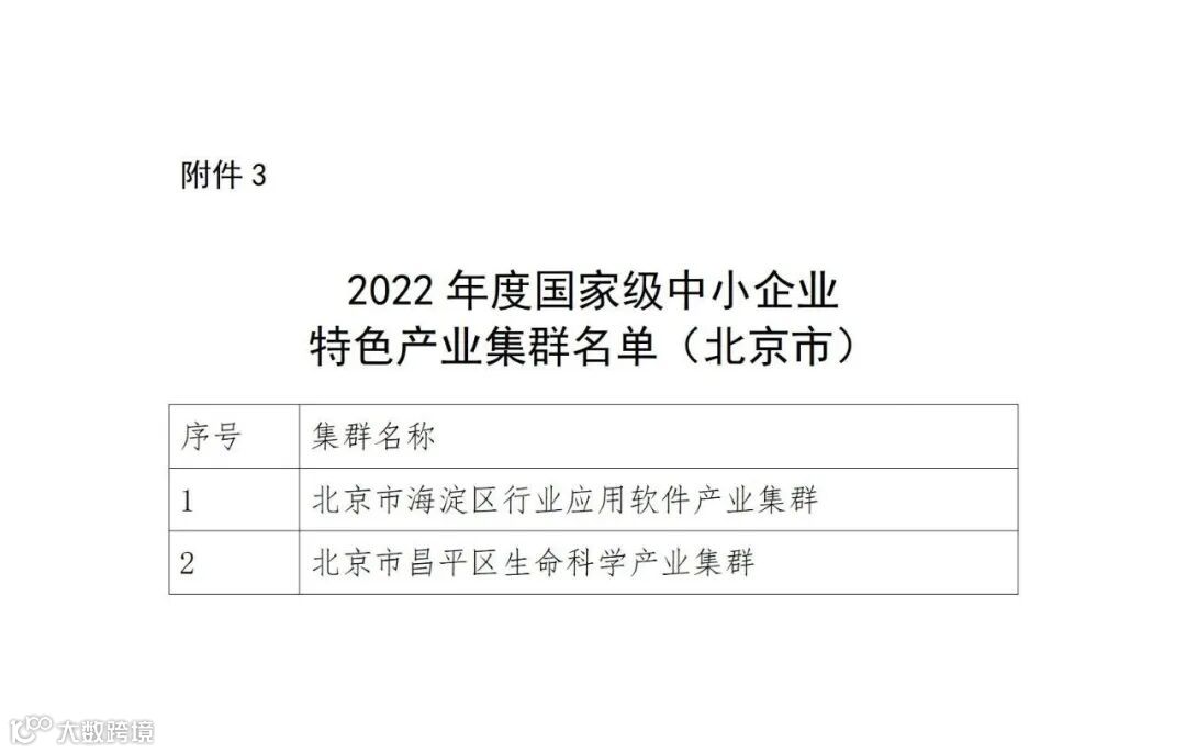 (2022年度国家级中小企业特色产业集群名单详见附件3)。