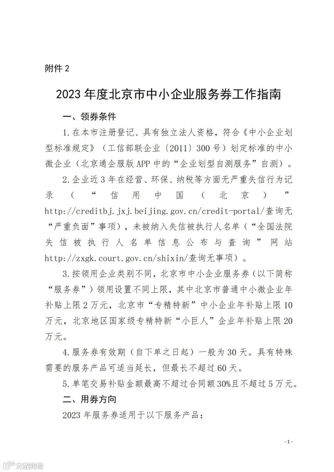 最高500万!丨关于发布《2023年北京市支持中小企业发展资金实施指南》的通知