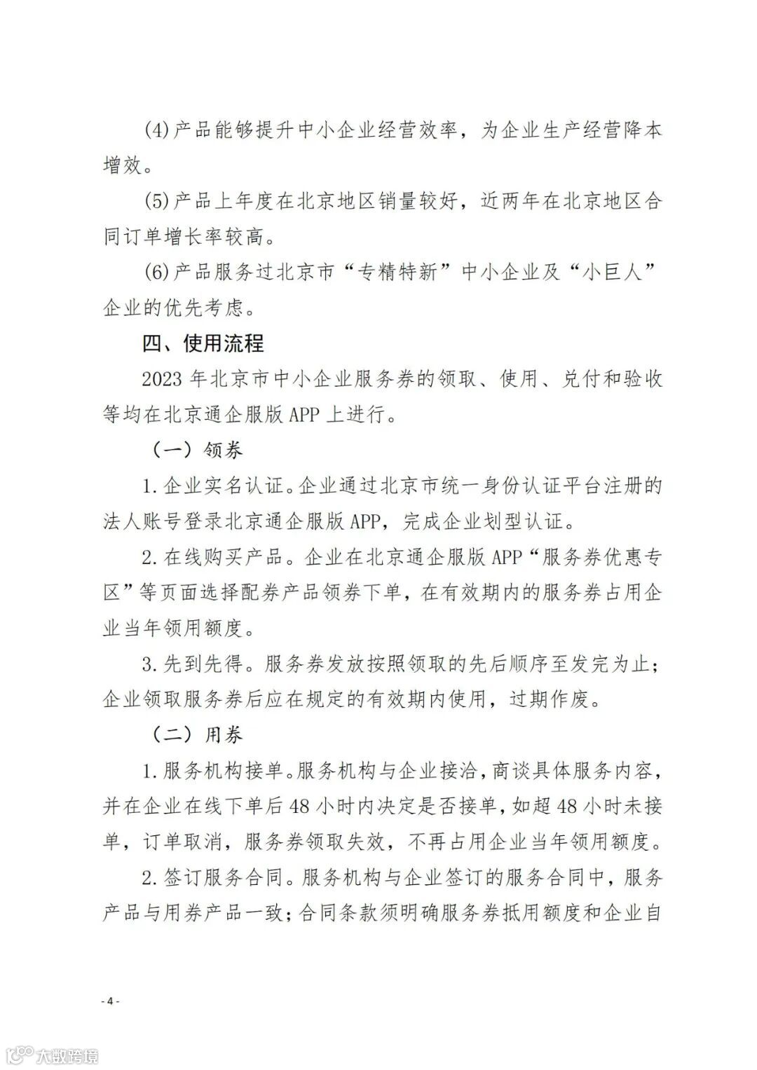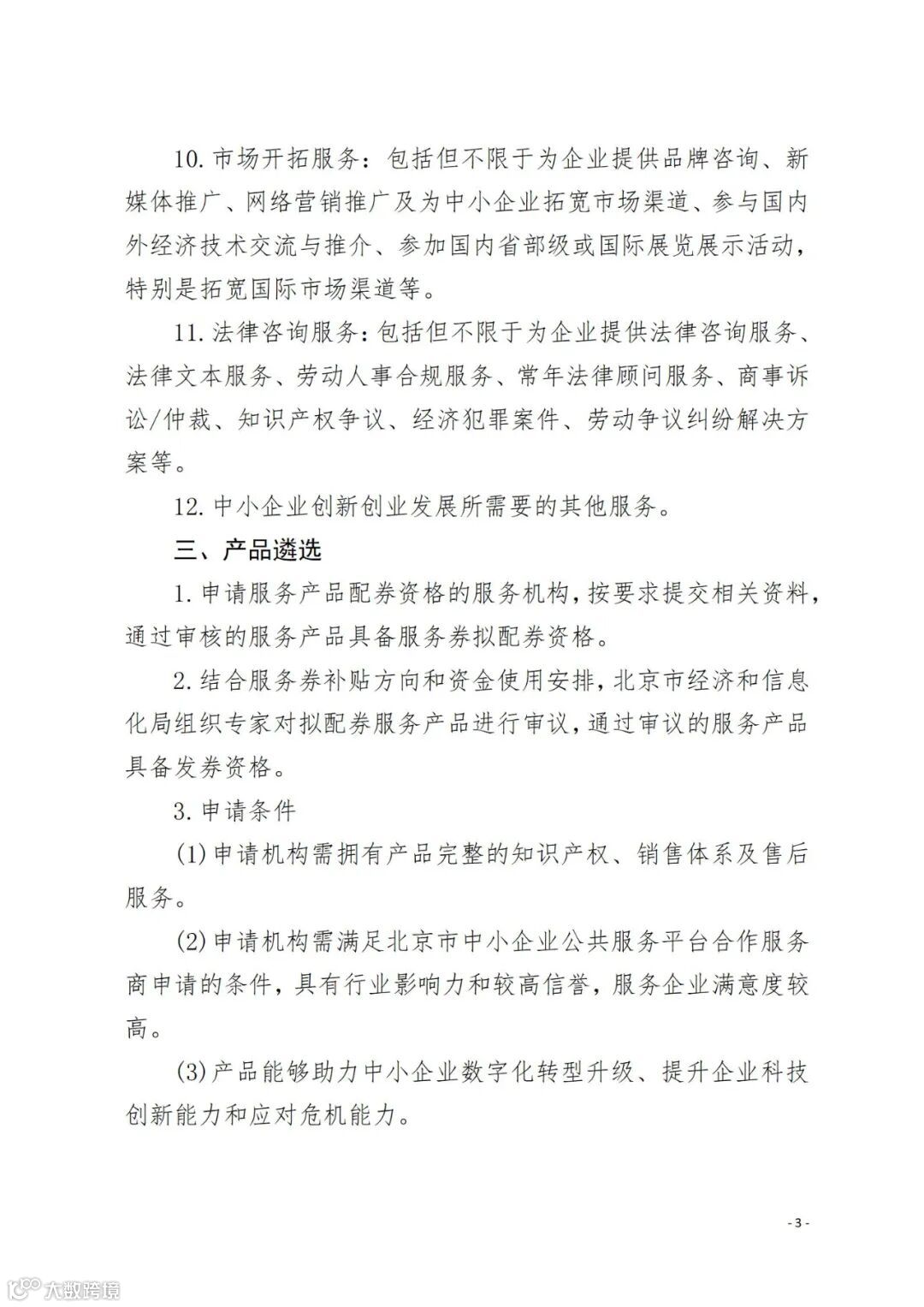 2.方向3为“免申即享”,服务券的领取、使用、兑现和验收等均在北京通企服版APP上进行,具体详见后续发布的2023年度北京市中小企业服务券工作指南。