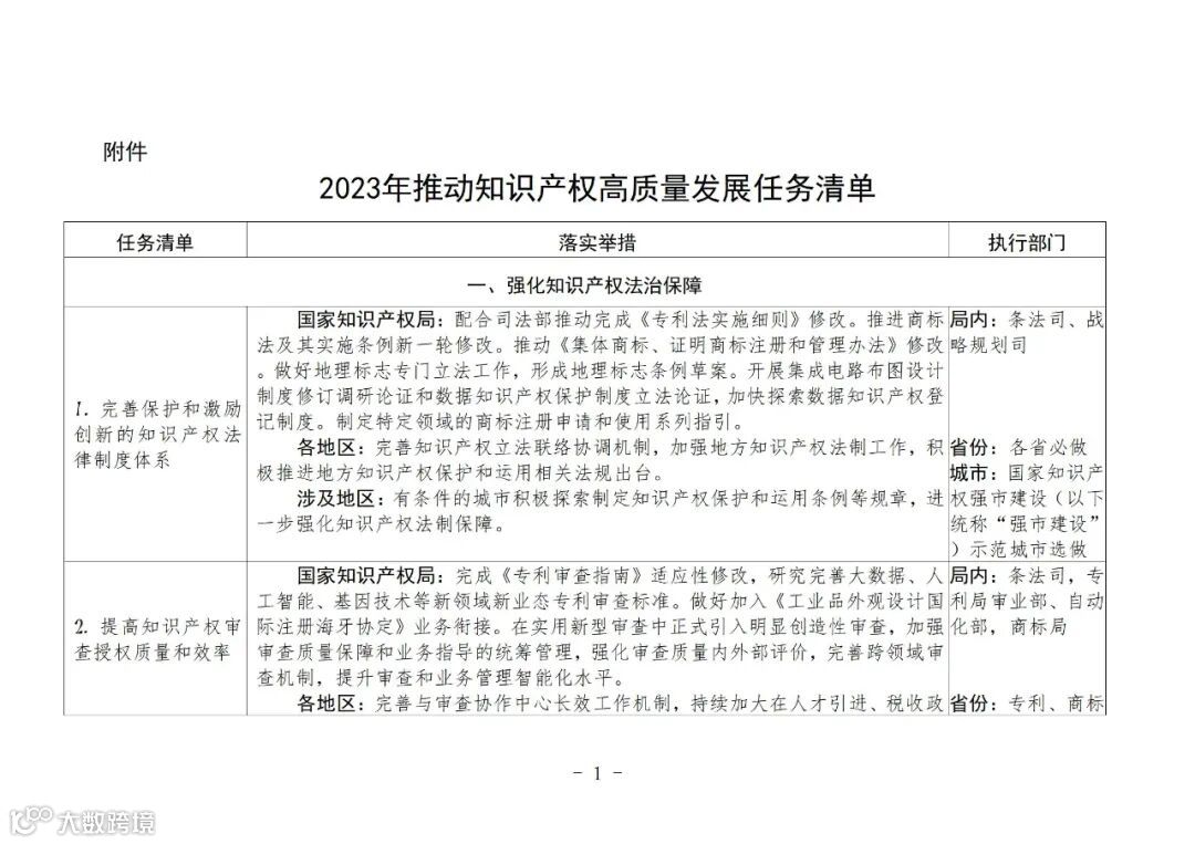 国家知识产权局关于印发《推动知识产权高质量发展年度工作指引(2023)》的通知