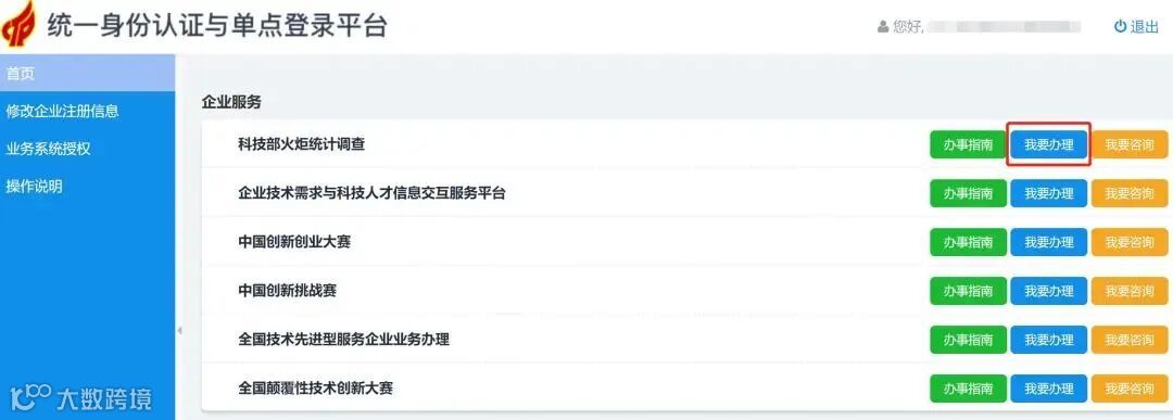 步骤四:进入火炬统计调查(点击“我要办理”)