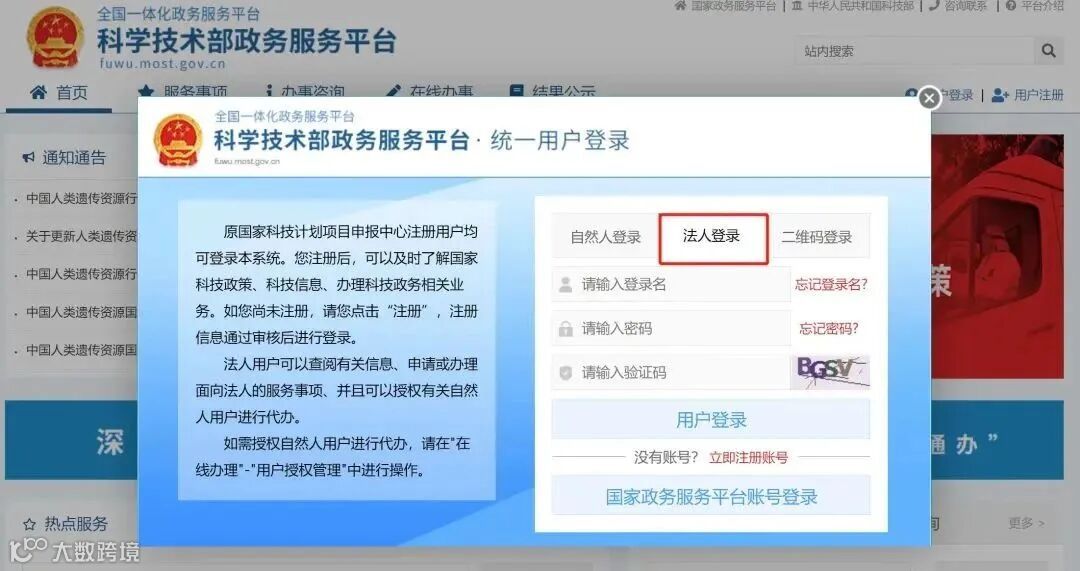 步骤一:登录科技部政务服务平台