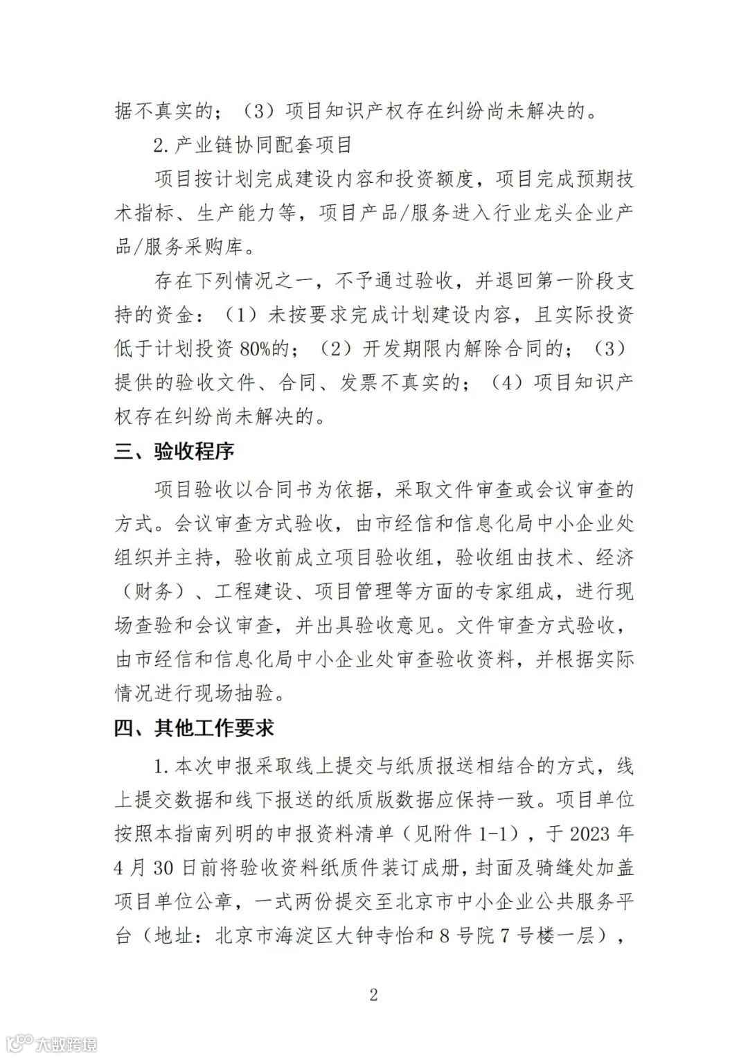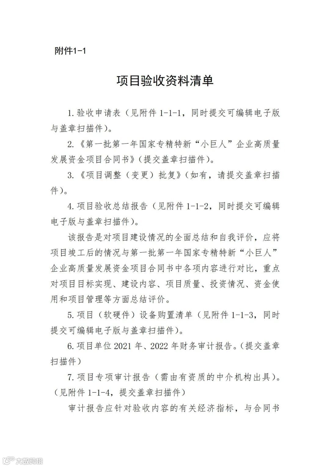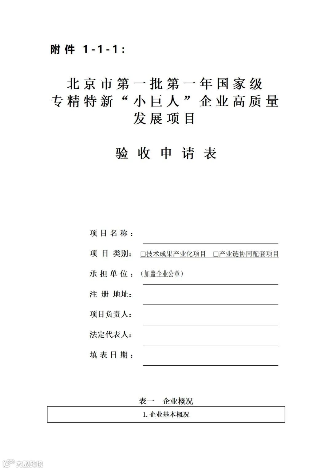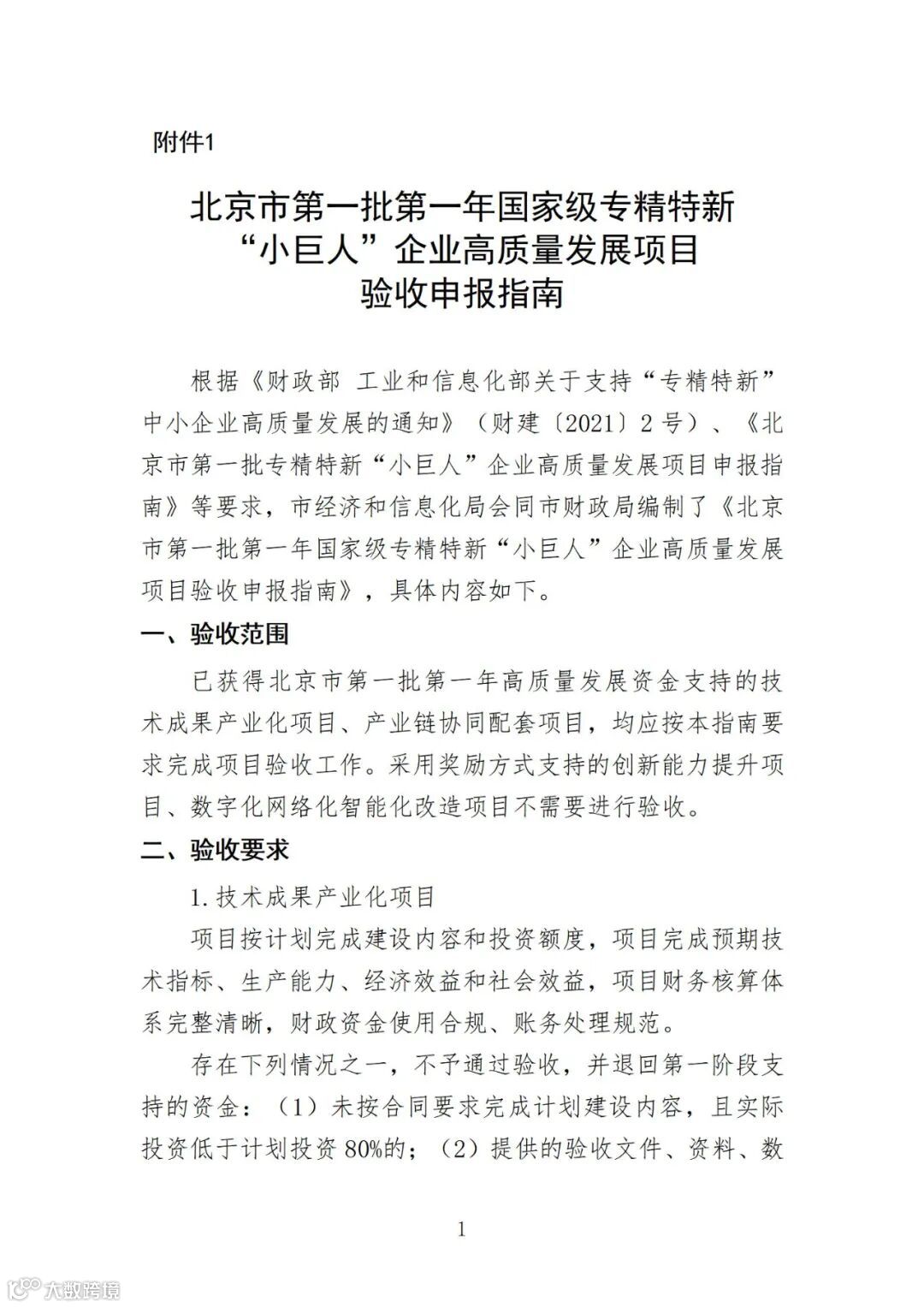 1.北京市第一批第一年国家级专精特新“小巨人”企业高质量发展项目验收工作申报指南