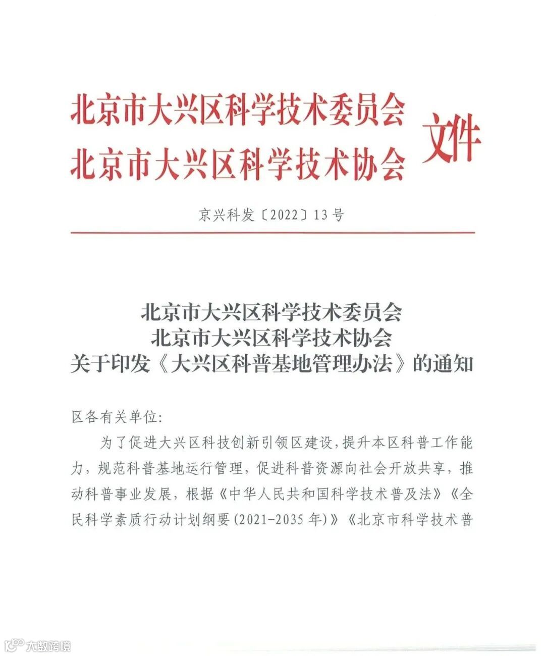 关于开展2023年大兴区科普基地申报工作的通知