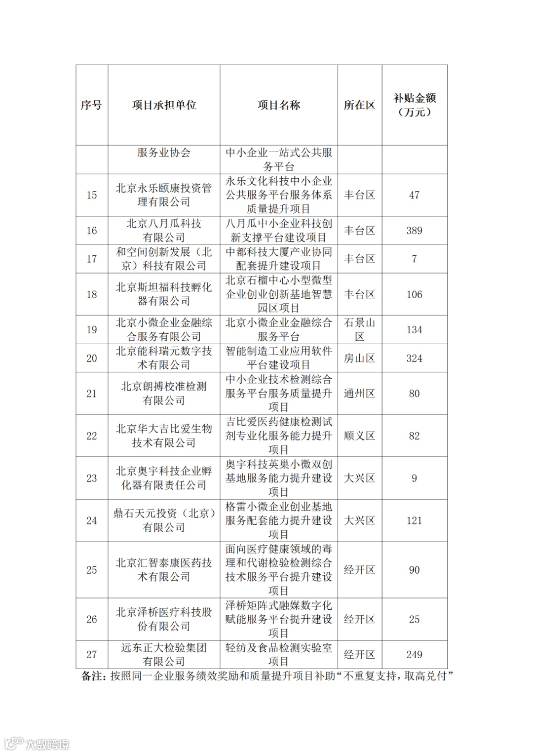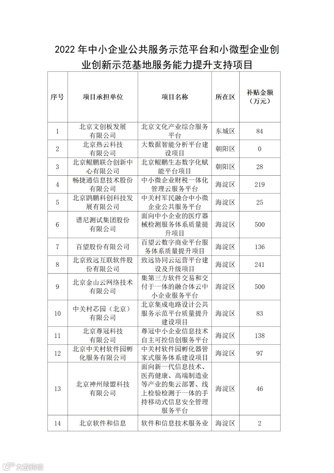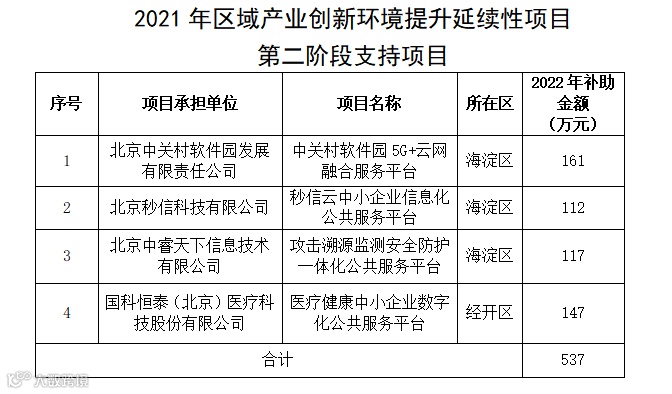 关于公布2022年北京市中小企业发展资金支持中小企业服务体系质量提升项目的通知