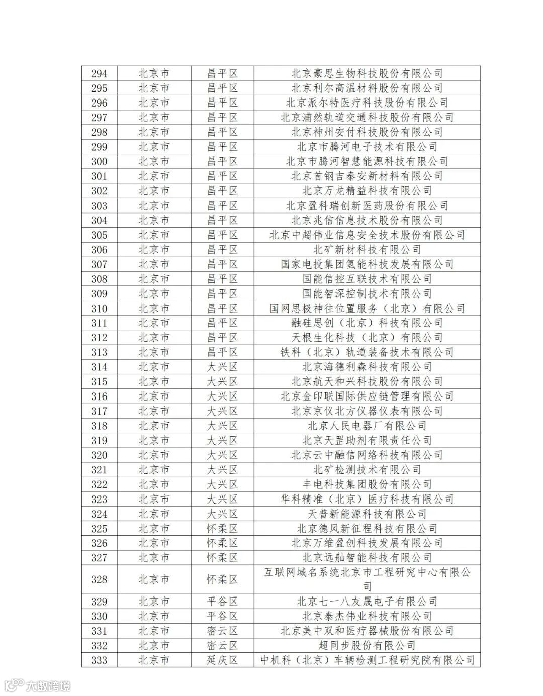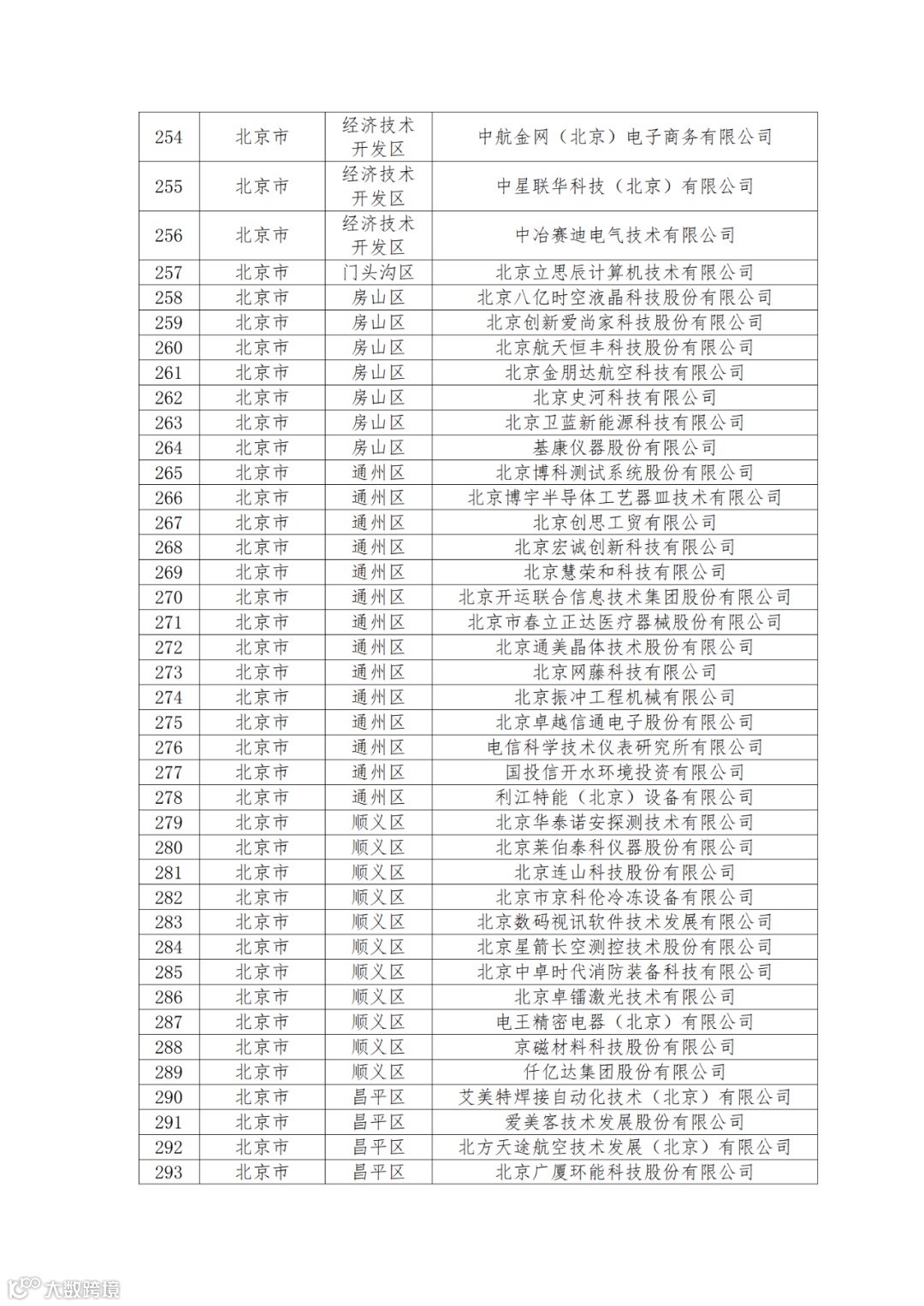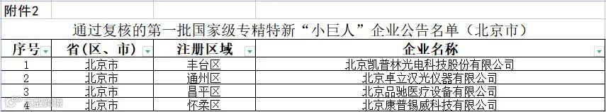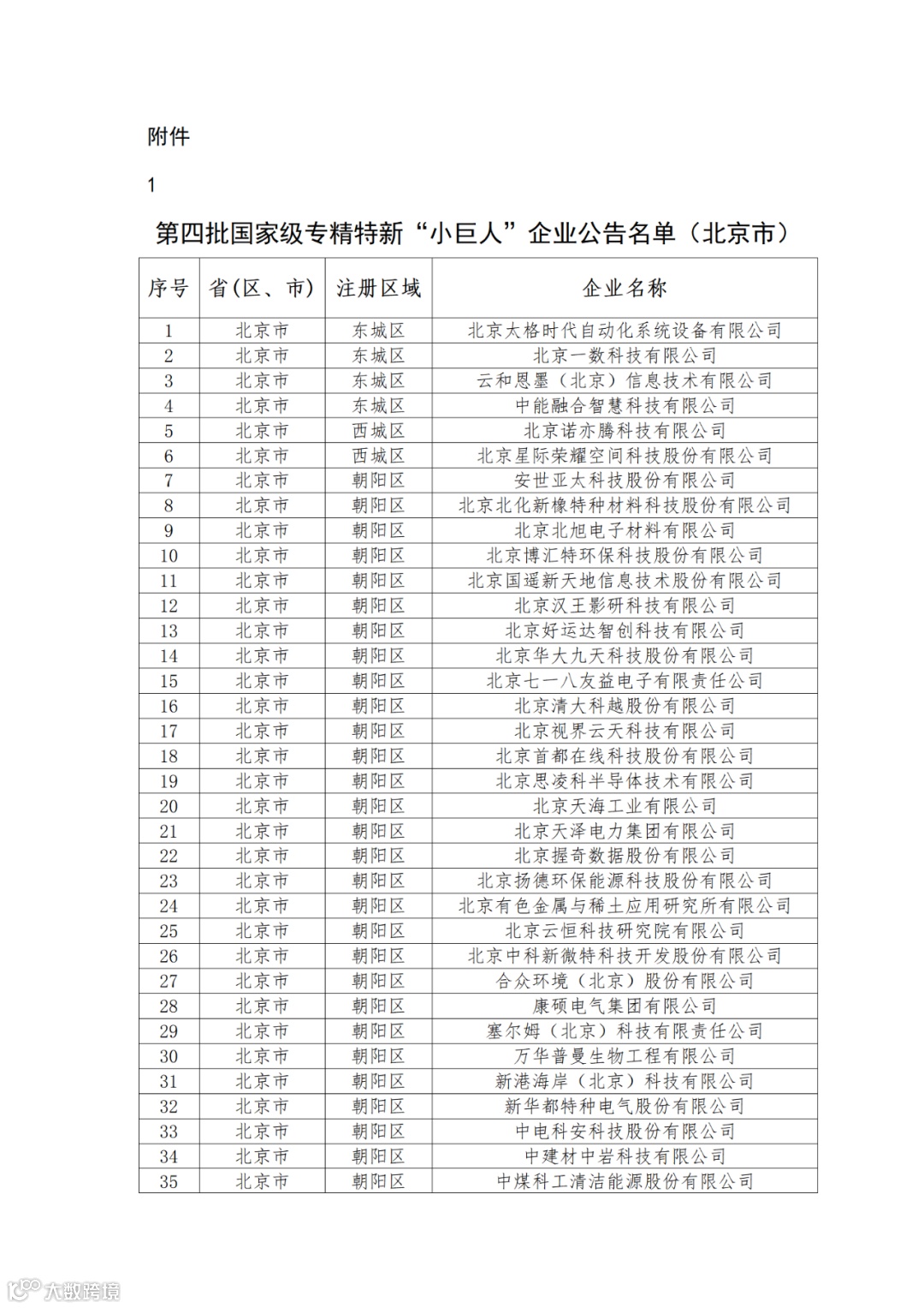 北京市经济和信息化局关于对第四批国家级专精特新“小巨人”企业和通过复核的第一批国家级专精特新“小巨人”企业名单进行公告的通知