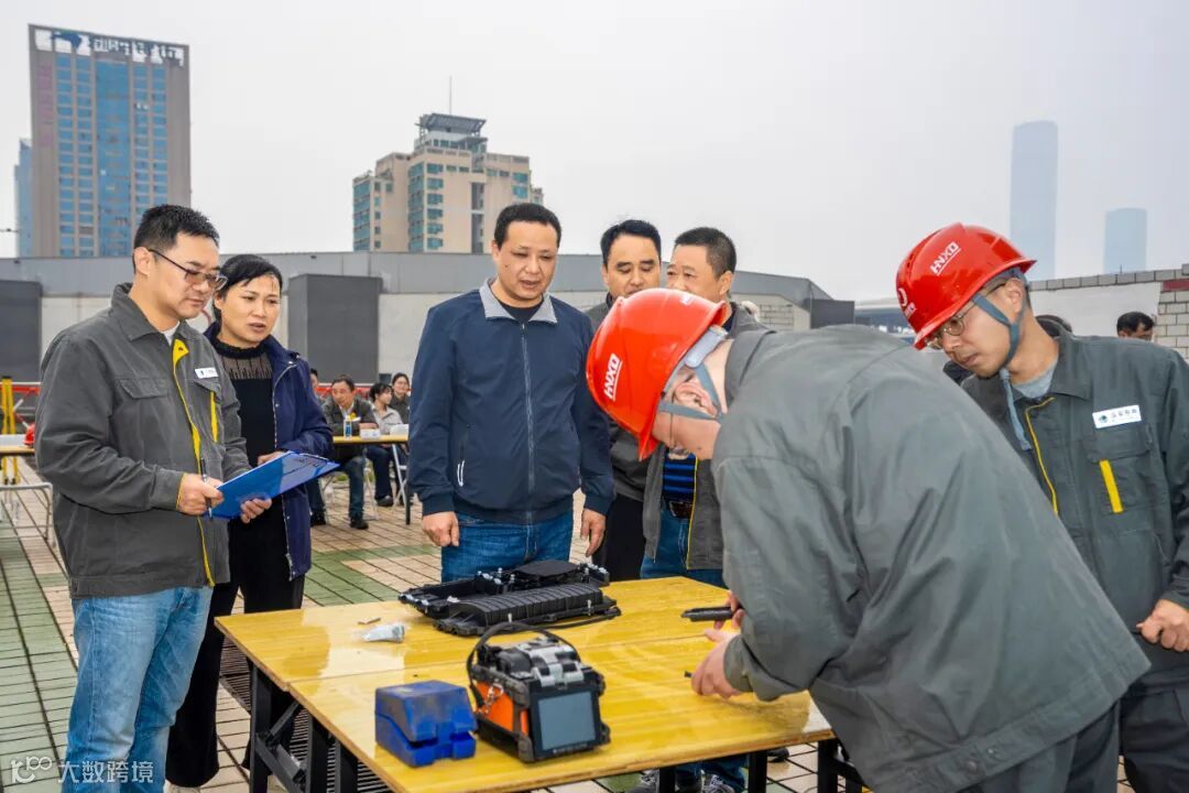在关键竞赛环节中,选手们的专业能力与应变能力得到充分检验。光缆开剥阶段,选手需在不损伤光纤护管与纤芯的前提下完成操作,任何一处失误都将导致扣分,极大考验了选手的精细操作能力;光纤端面制备环节,切割角度需严格控制在≤0.5°以内,以保障后续信号传输稳定,选手们凭借精湛技艺,精准完成每一次切割;熔接操作作为竞赛核心环节,对选手综合能力要求更高,不仅要确保光纤色序正确(避免影响通信系统运行),还需熟练操控熔接机,精准设置参数、控制熔接时间,将熔接损耗控制在≤0.05dB 的标准内。比赛过程中,选手们紧盯设备数据,及时调整操作,力求达到最佳熔接效果,展现了扎实的技术功底。