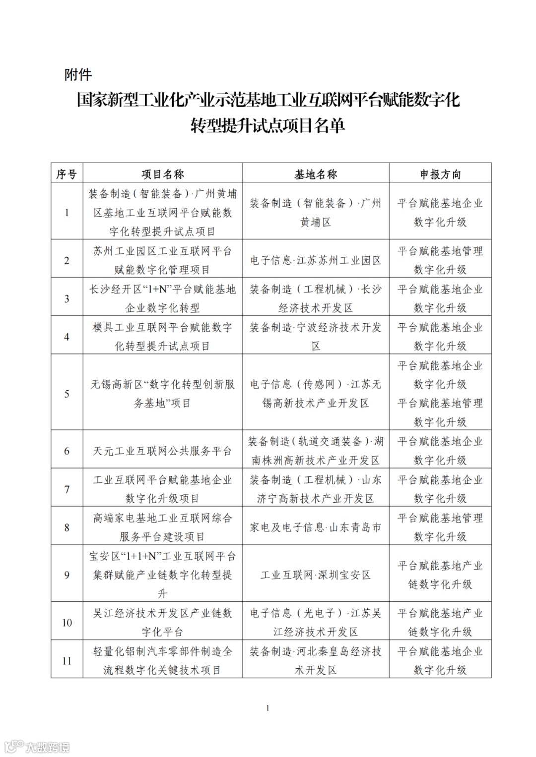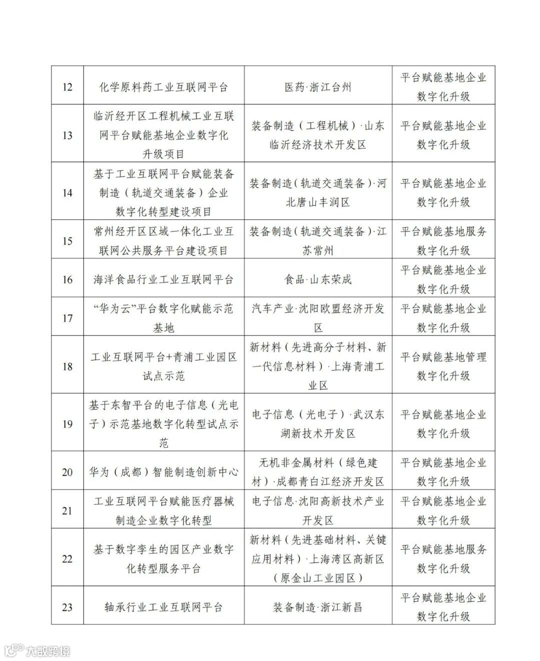 国家新型工业化产业示范基地工业互联网平台赋能数字化转型提升试点项目名单公示