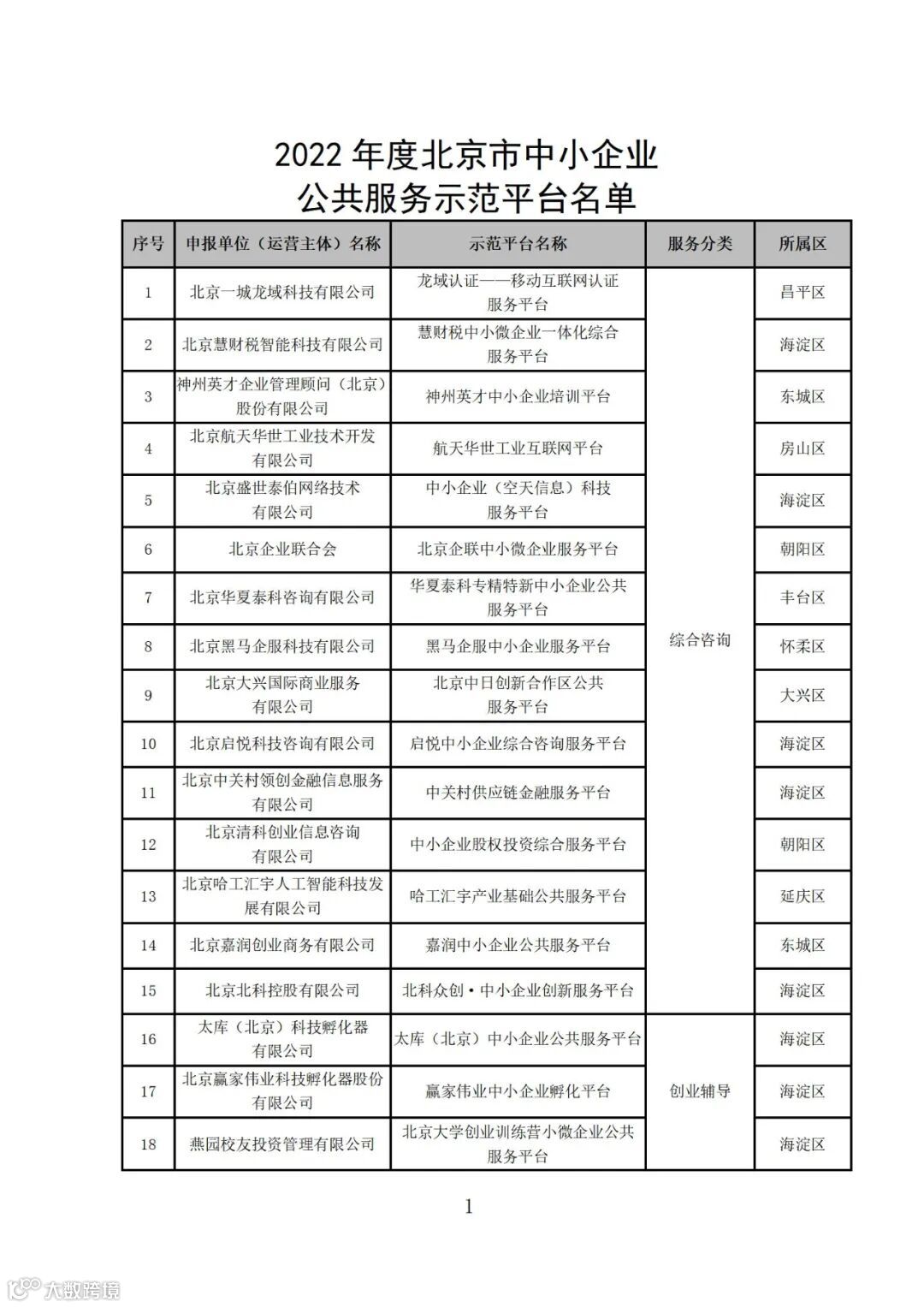 附件:1.2022年度北京市中小企业公共服务示范平台名单