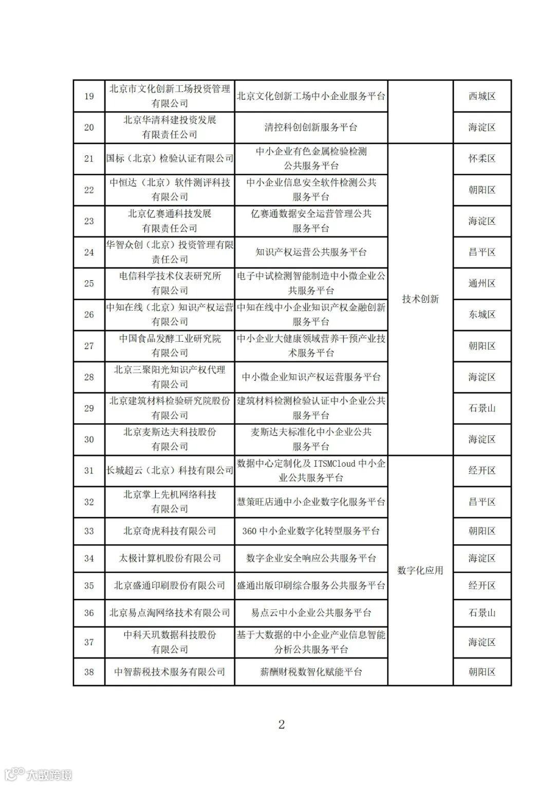 一、同意授予北京一城龙域科技有限公司所属“龙域认证—移动互联网认证服务平台”等46个平台为“北京市中小企业公共服务示范平台”(具体名单见附件1)。