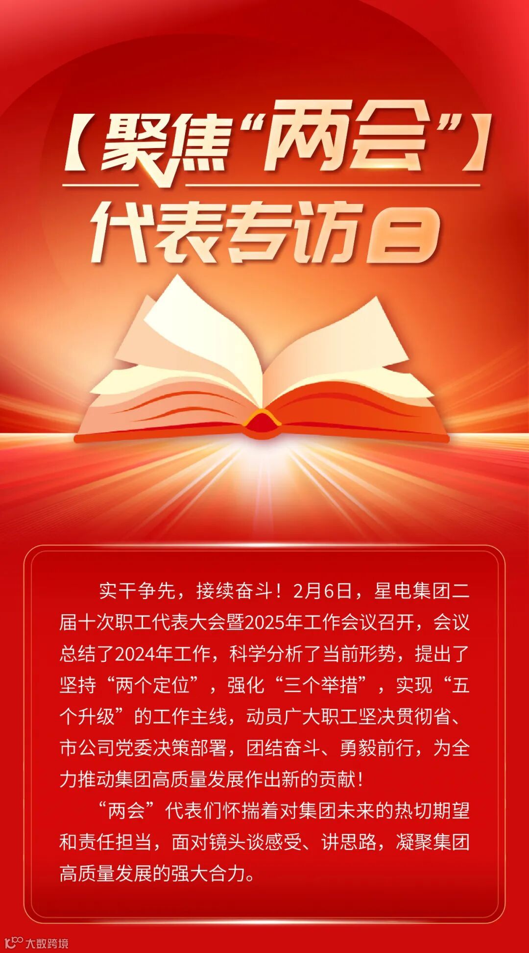 集团两会工作报告主题鲜明,内涵深刻,为我公司今年的工作指明了行动方向。2025年,星望公司将全面贯彻落实上级和集团公司“两会”精神,凝心聚力、全力以赴,把战略规划转化为具体行动。
