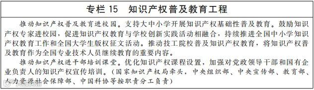 提升知识产权人才能力水平。完善知识产权人才分类培训体系,健全人才保障机制。加强知识产权理论研究,完善知识产权研究管理机制,强化智库建设,鼓励地方开展政策研究。加强知识产权行政管理、行政执法、行政裁决人员培养,分层次分区域持续开展轮训。加强企事业单位知识产权人才培养,建设理论与实务联训基地。建立知识产权服务业人才培训体系,提高服务业人才专业能力。大力培养知识产权国际化人才。(国家知识产权局牵头,中央宣传部、市场监管总局等按职责分工负责)