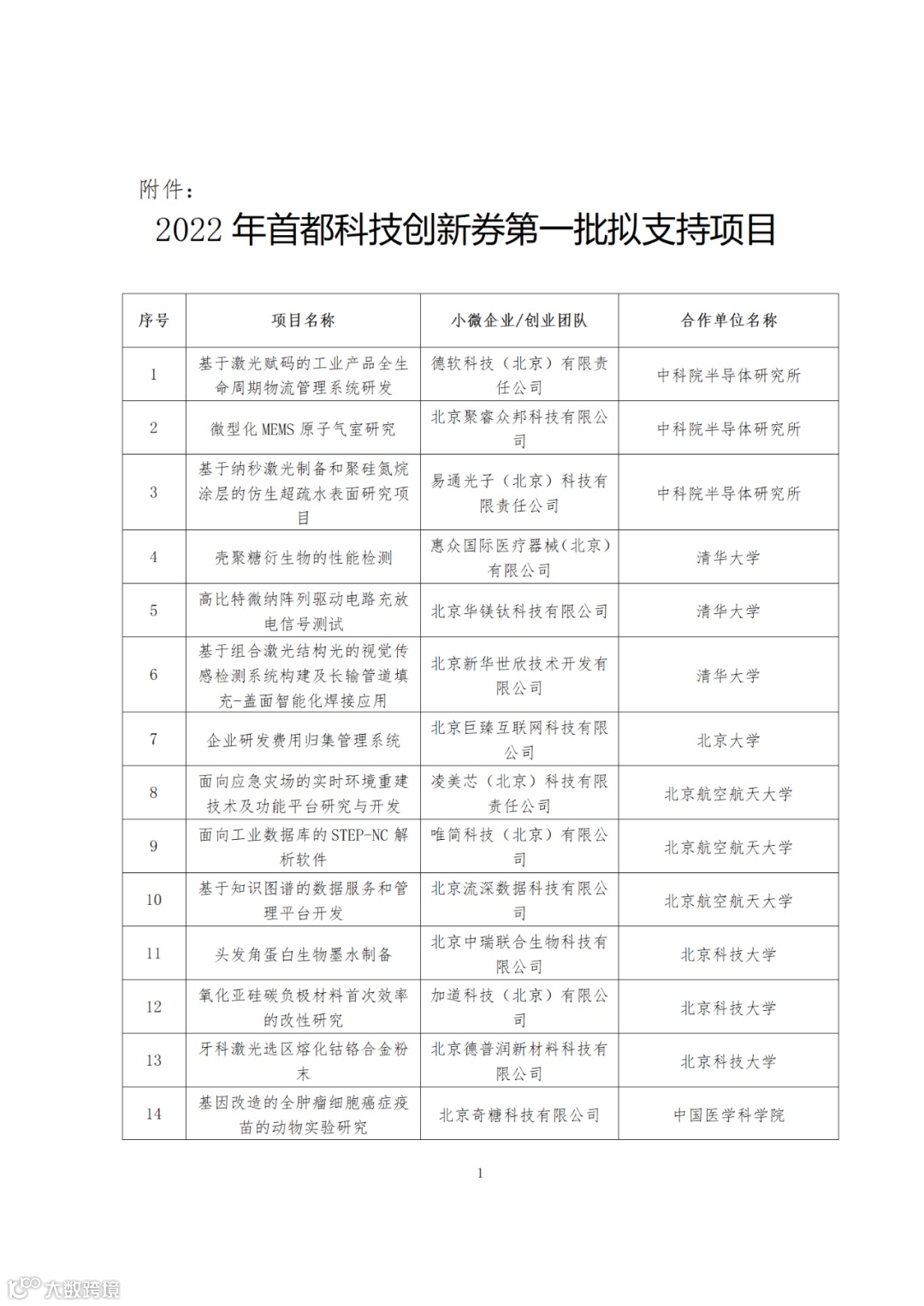 关于公示2022年首都科技创新券第一批拟支持项目的通知