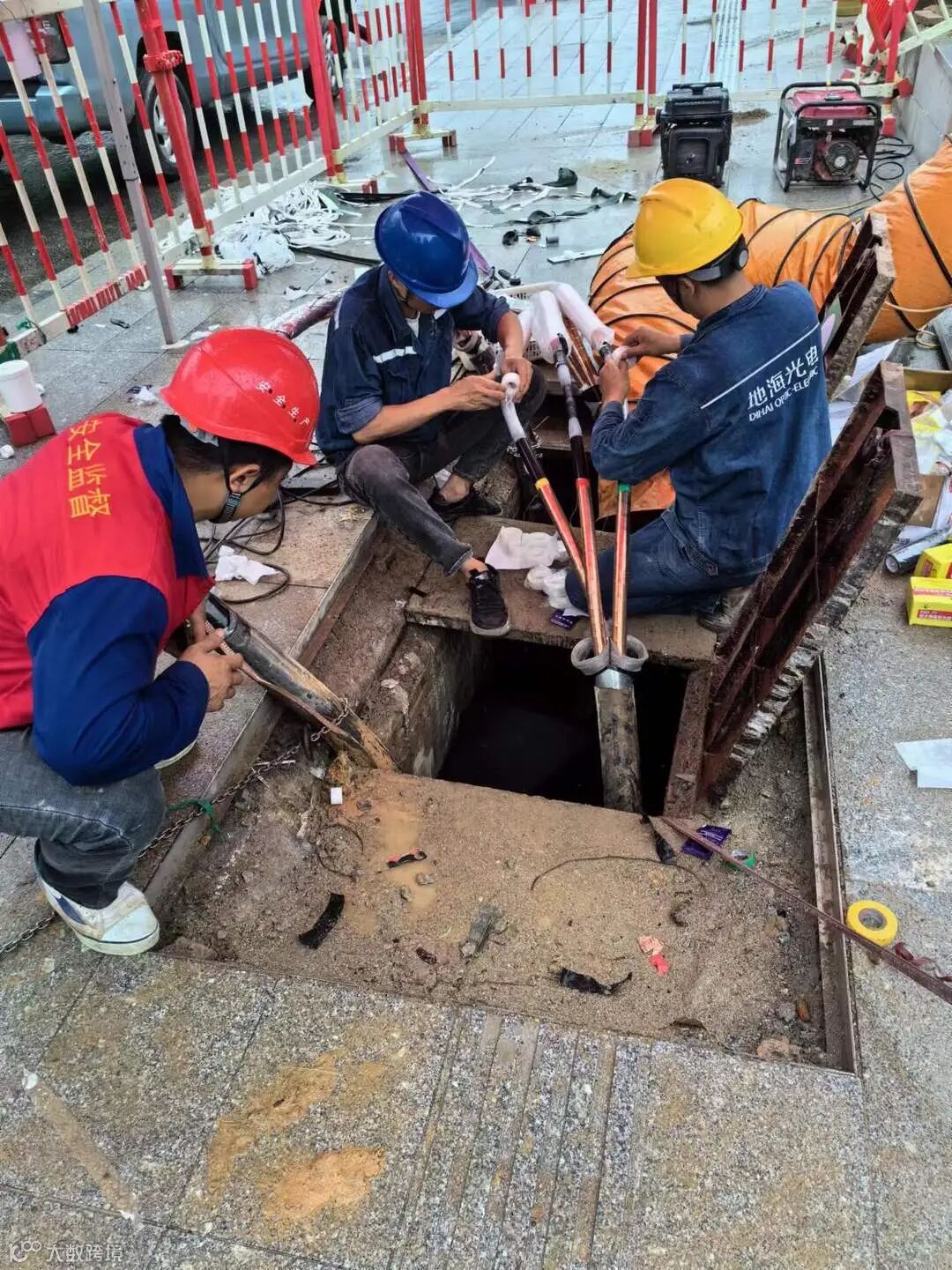 为了不影响送电时间,星际公司安排9组熔接头制作人员、9套制作设备同时进行。然而,9个熔接头分布在3个工作井,有一个工作井需制作5个熔接头,是当天工作的最大难点。