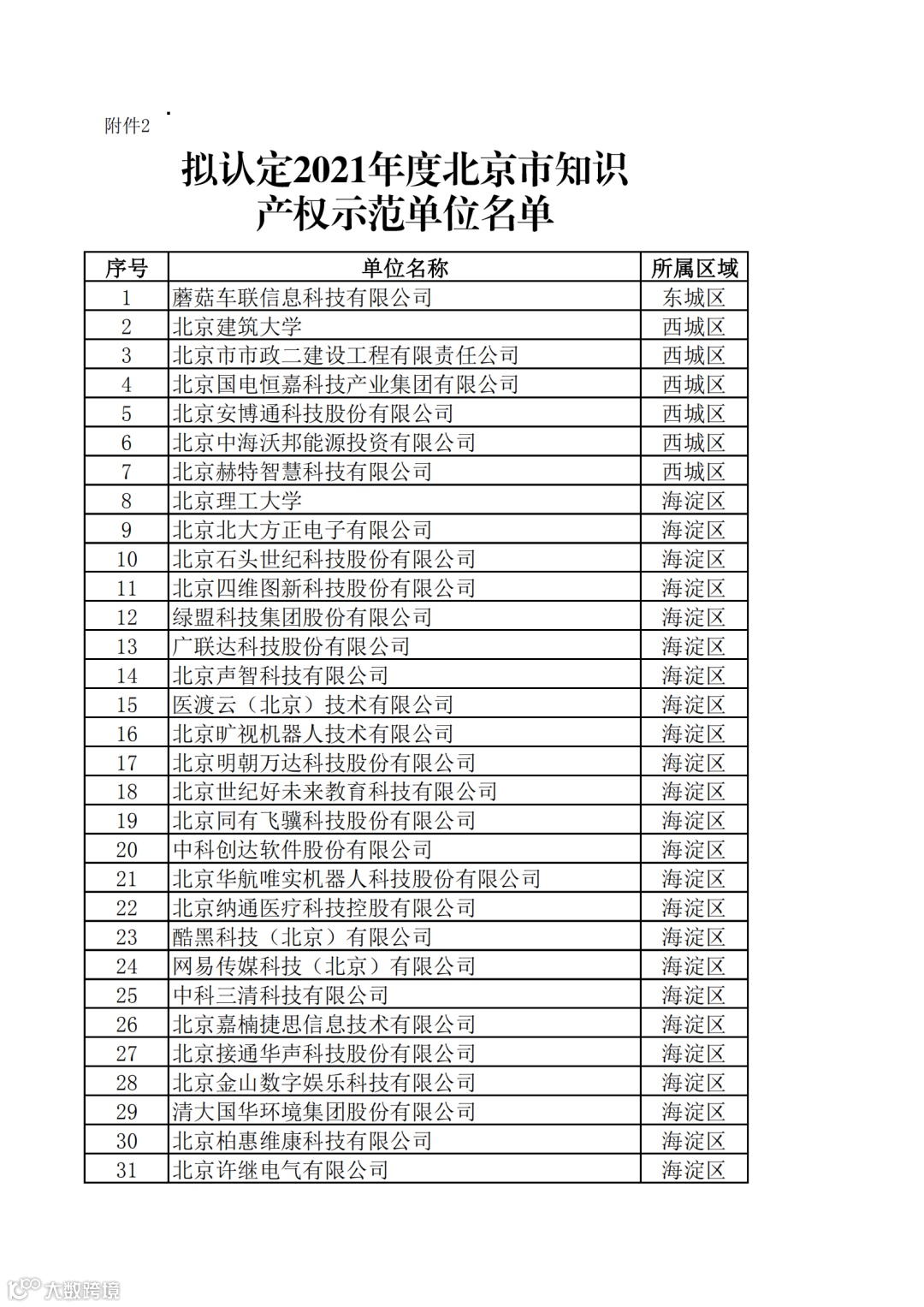 附件二:2021年度北京市知识产权示范单位名单.pdf