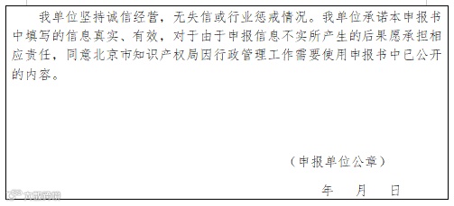 应符合《北京市知识产权运营试点示范单位认定与管理办法》规定。同时,申报单位应恪守诚信,无失信记录。