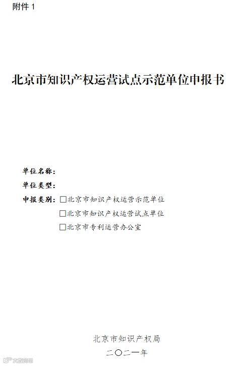为进一步深化知识产权运营服务体系建设,促进知识产权转化运用,根据《北京市知识产权运营试点示范单位认定与管理办法》,开展2021年北京市知识产权运营试点示范单位(以下简称运营试点、示范单位)申报工作,现将有关事项通知如下: