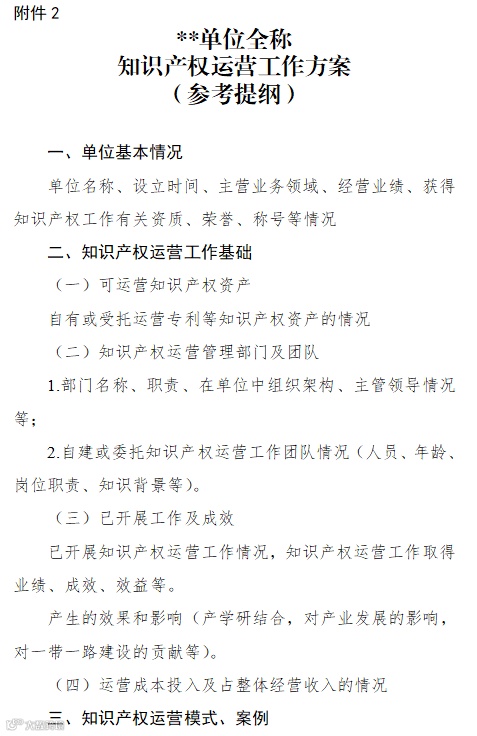 制定知识产权运营工作方案,建立知识产权运营工作制度,明确知识产权运营服务工作标准,组建高水平知识产权运营团队,形成可持续知识产权运商业模式,促进知识产权价值充分实现。