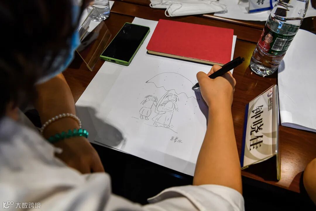 大家天马行空的想象力组合在一起,碰撞出了奇妙的火花。有的从一本书开始画,最后得到的是放飞的风筝,不变的是放飞心灵的初衷;有的从海滩开始画,最后得到的是乡间田园风光,永恒的是对自由与宁静的追求……用一笔一画诠释内心,疗愈自我。