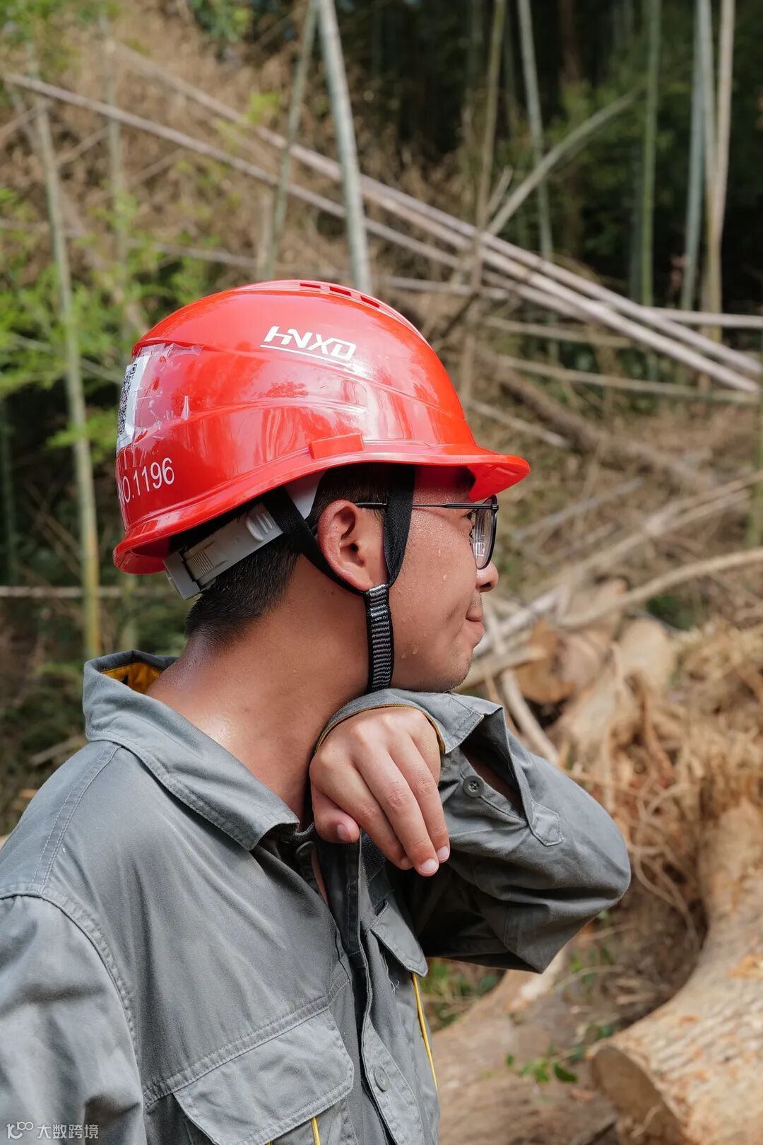 我们的队伍“友”力量!从山脚到竞赛桩位沿线经过12家村户,为竞赛增加协调难度。进场第二天,村民擅自利用刚刚形成的施工便道进行树木搬运,与竞赛施工人员、机械存在交叉作业,打乱施工节奏。教练组第一时间跟村民沟通协调,本着互相理解的态度达成共识,并将上午的使用时间让给村民。