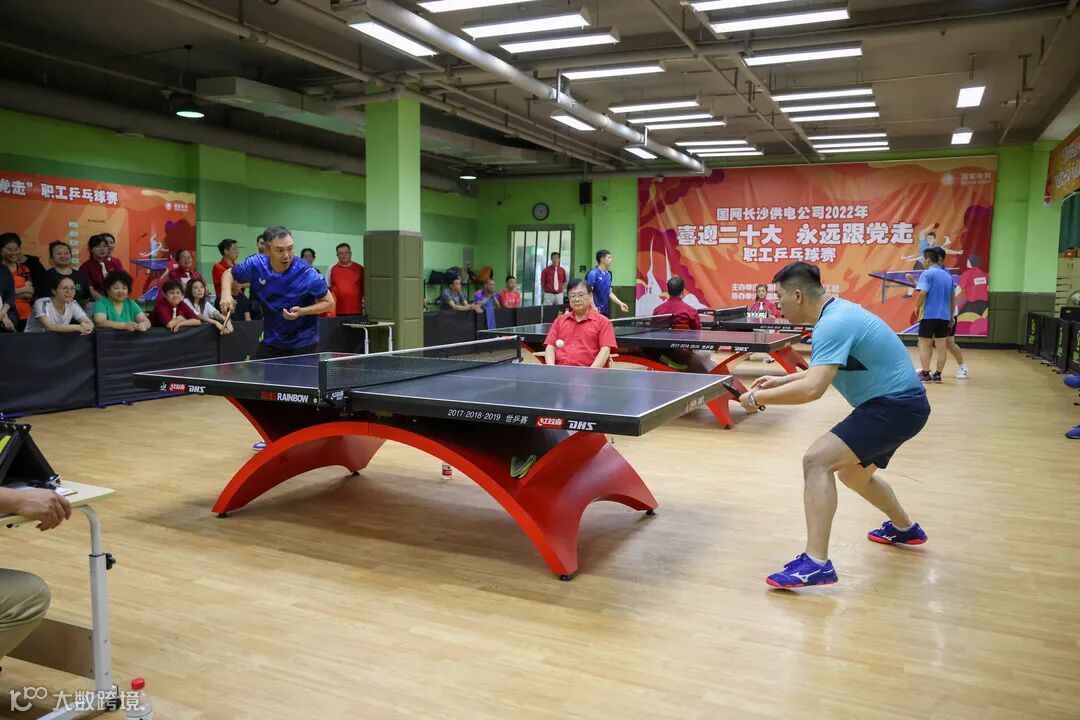 第二阶段交叉淘汰赛,通过交叉分组(即 A 组第一对阵 C 组第二, B 组第一对阵 A 组第二,C 组第一对阵 B 组第二),5 盘 3 胜制(抢 3 制,即 见 3 就收),每盘 5 局 3 胜,胜者晋级冠军循环赛。星电集团代表队对战A组第二名出线的湘江新区公司代表队。比赛场上,两支队伍发球抢攻、上步搓球、反手拧拉、侧身进攻......,小小白球在方寸之间划出一条条美丽的弧线,精彩迭出的对打引来阵阵喝彩声和热烈的掌声。集团代表队顺利进入前三强。