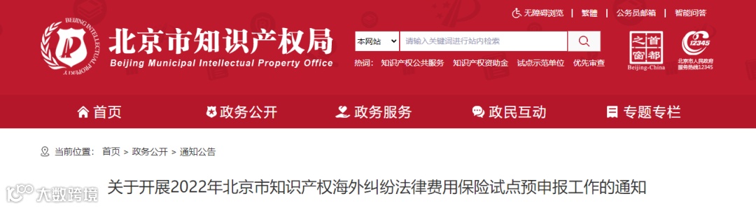 为加快2022年北京市知识产权海外纠纷法律费用保险试点工作进度,进一步摸清底数、了解需求,更有针对性的做好保险投保服务工作,我局将开展2022年北京市知识产权海外纠纷法律费用保险试点项目预申报工作,现就有关事项通知如下: