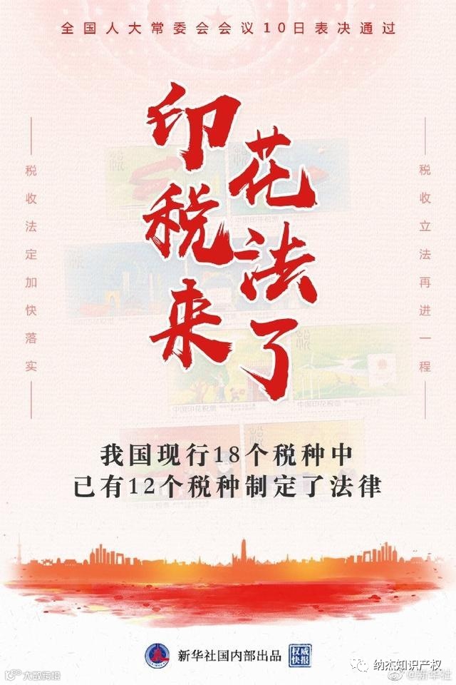据新华社讯,十三届全国人大常委会第二十九次会议于6月10日下午表决通过印花税法,自2022年7月1日起施行。1988年8月6日国务院发布的《中华人民共和国印花税暂行条例》将同时废止。