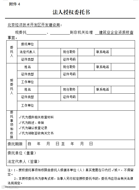 (二)非法人到场的携带法人委托书(附件4:法人委托书)、法人身份证复印件、被委托人身份证复印件、法定代表人身份证明书(附件2:法定代表人身份证明书)、住房城乡建设机构当事人送达地址确认书(附件3:住房城乡建设机构当事人送达地址确认书)。(以上资料均需加盖公章)