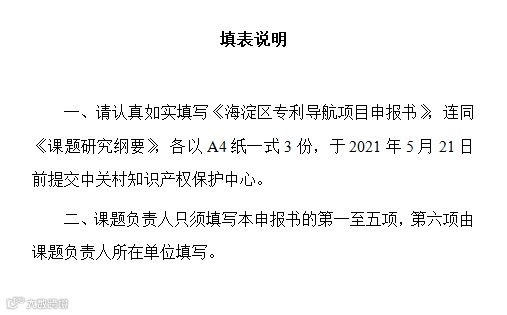 1.申报单位可登录中关村知识产权保护中心网站首页(http://www.bjhd.gov.cn/ippc/),自行下载《海淀区专利导航项目申报书》(见附件),申报单位应根据自身实际条件申报,如实填报申报书。