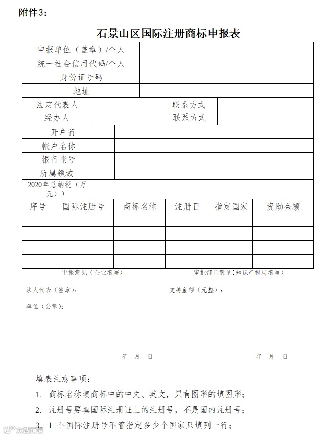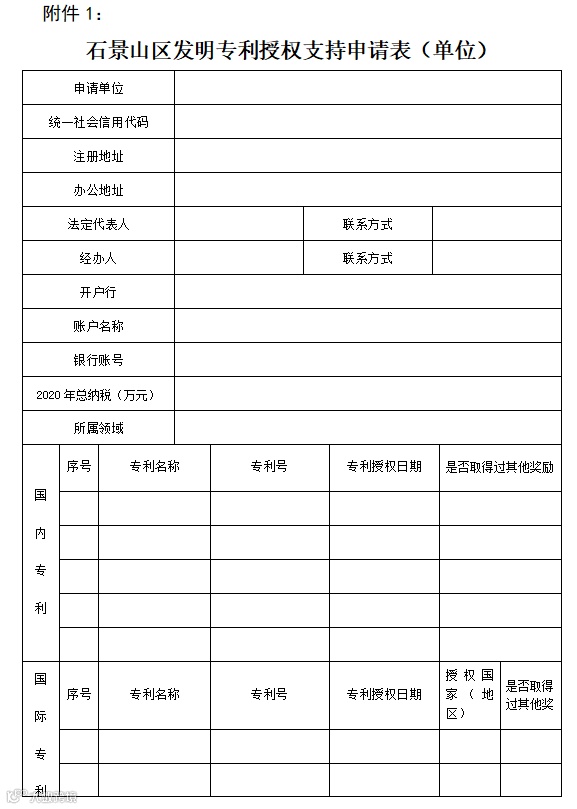 附件:1.《石景山区发明专利授权支持申请表(单位)》