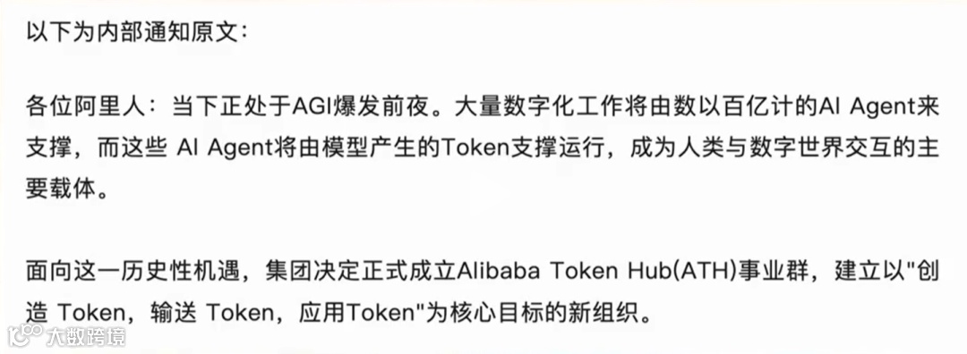 通知里的话,字字珠玑,又字字扎心:“当下正处于AGI爆发前夜。大量数字化工作将由数以百亿计的AI Agent来支撑,而这些AI Agent将由模型产生的Token支撑运行。”