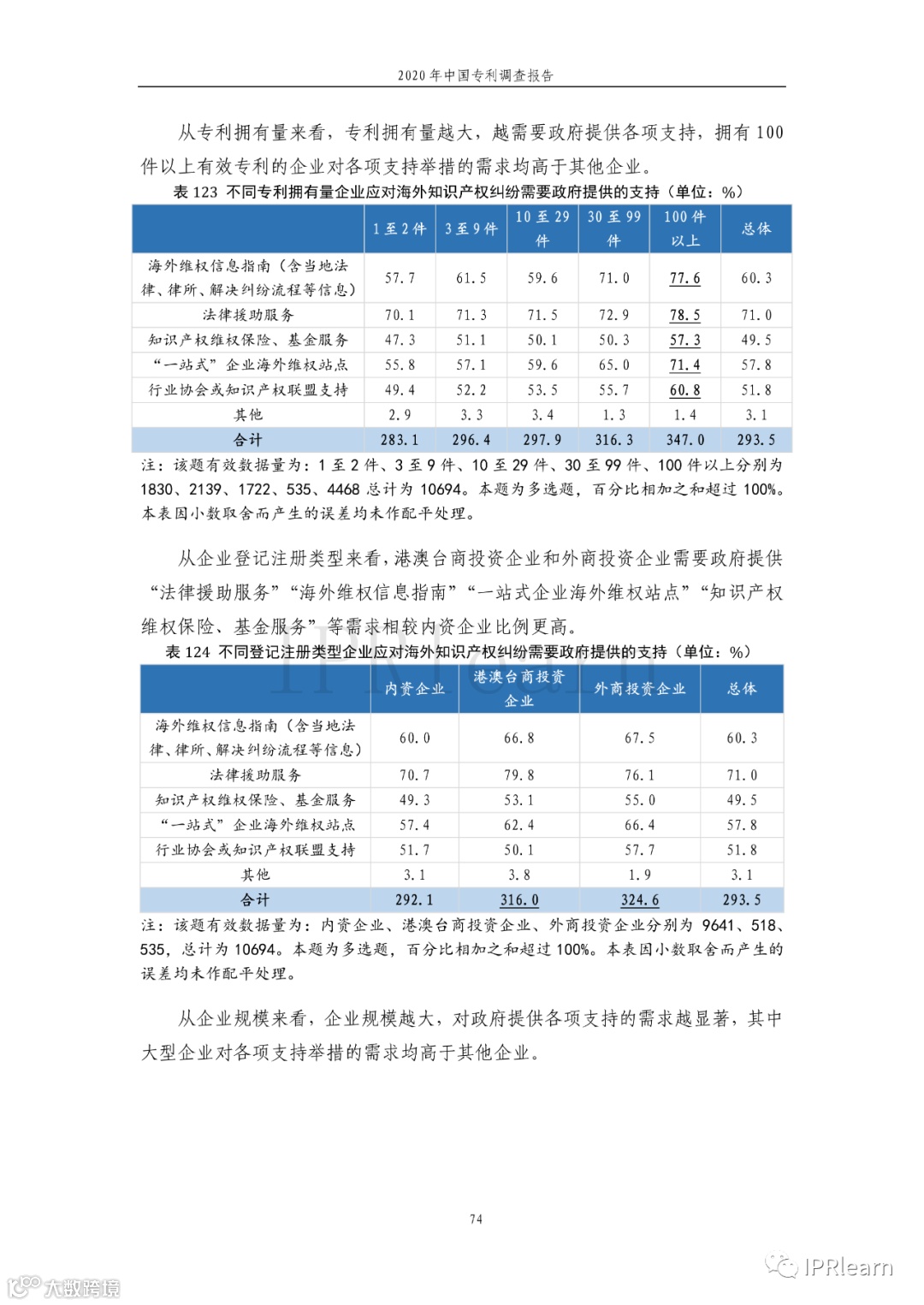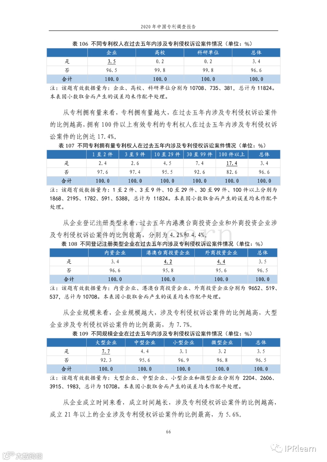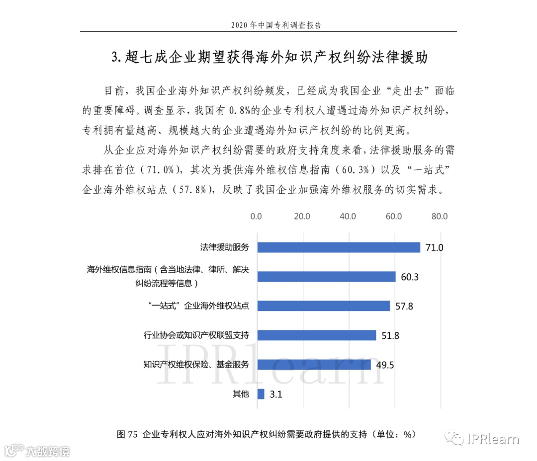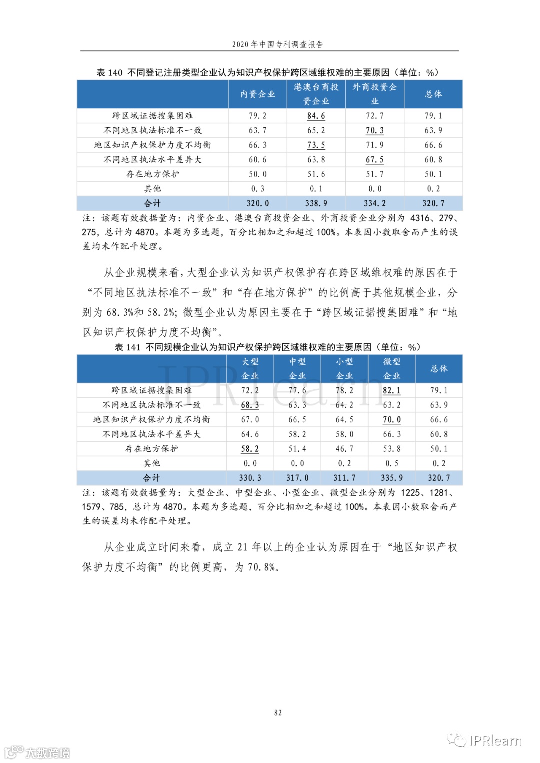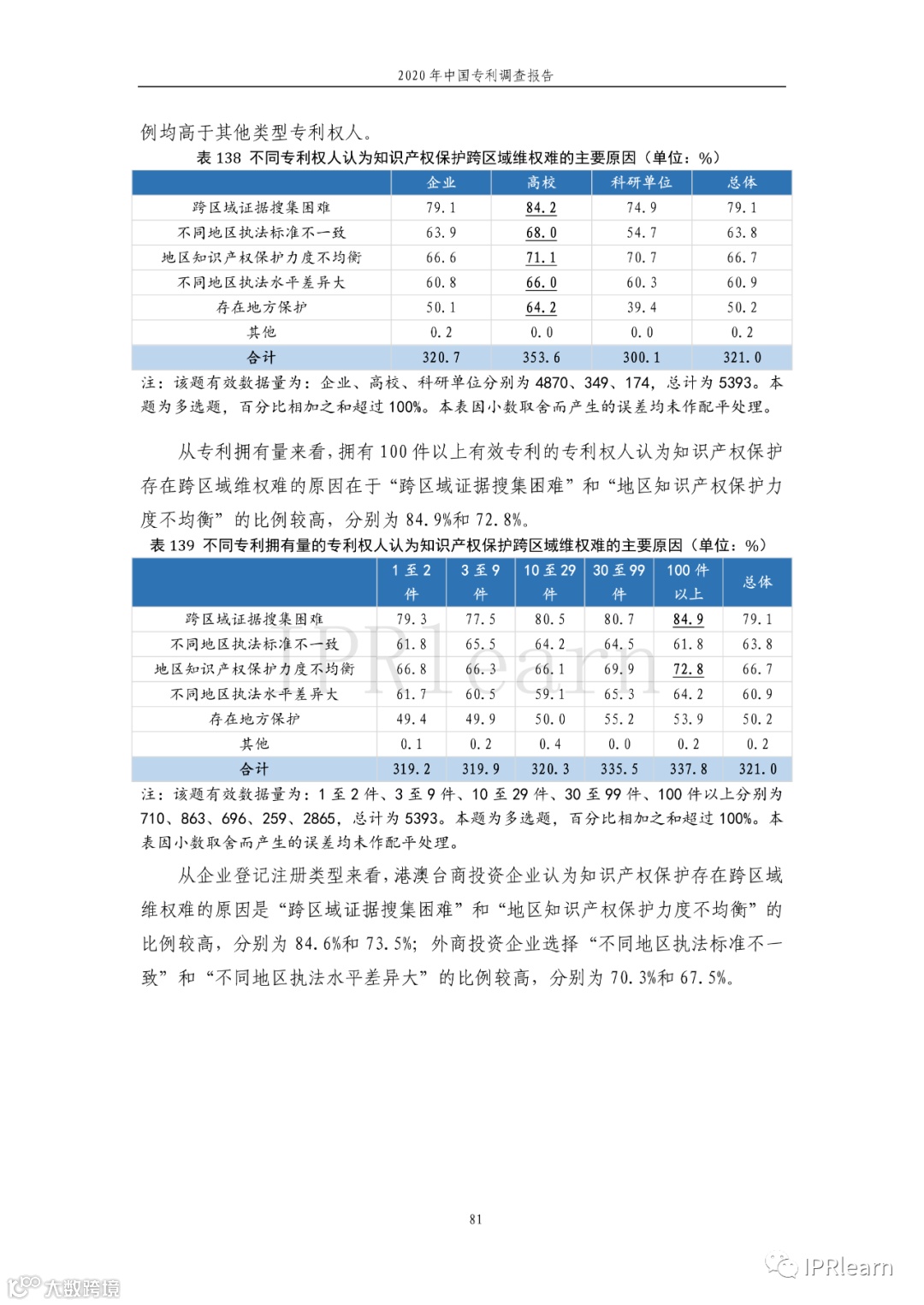 专利权人维权意识持续增强。2020年调查显示,我国企业专利权人遭遇侵权后采取维权措施的比例为73.9%,较2015年提高11.1个百分点,表明专利权人在遭遇侵权后更加积极主动维护自身合法权益。