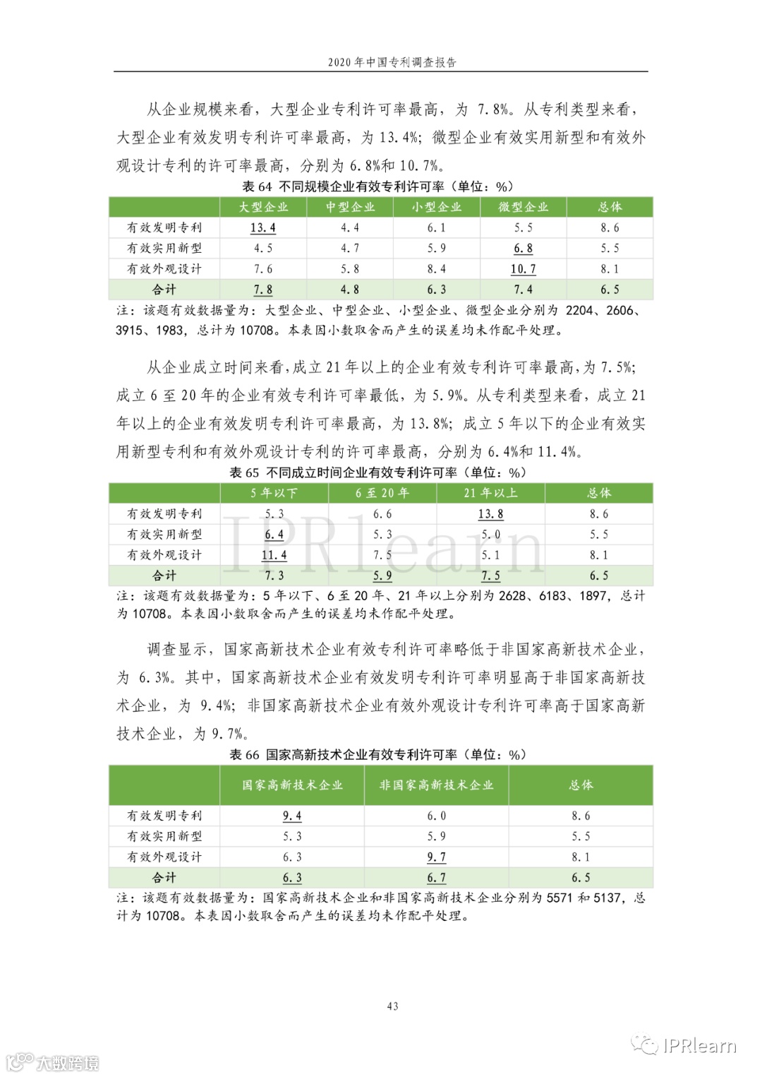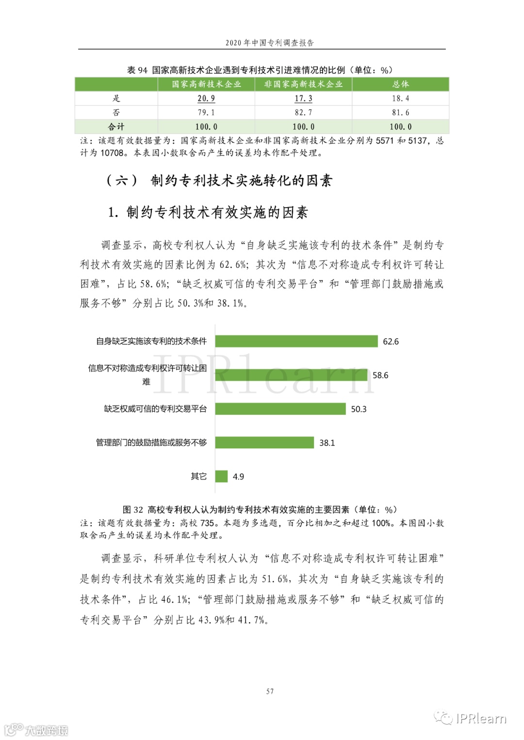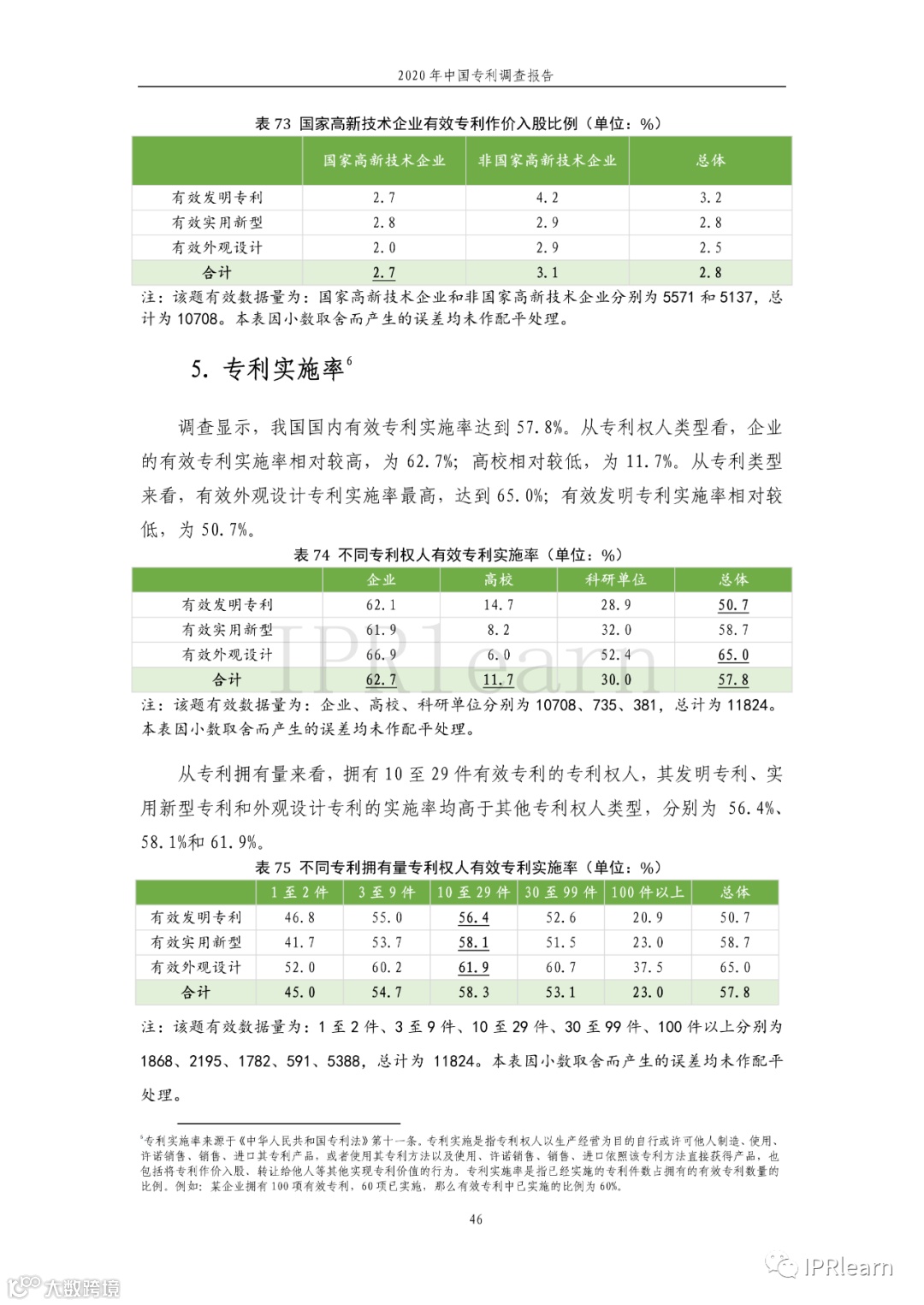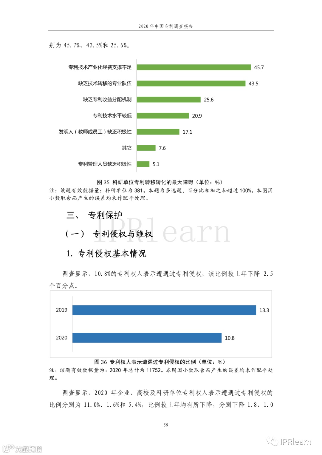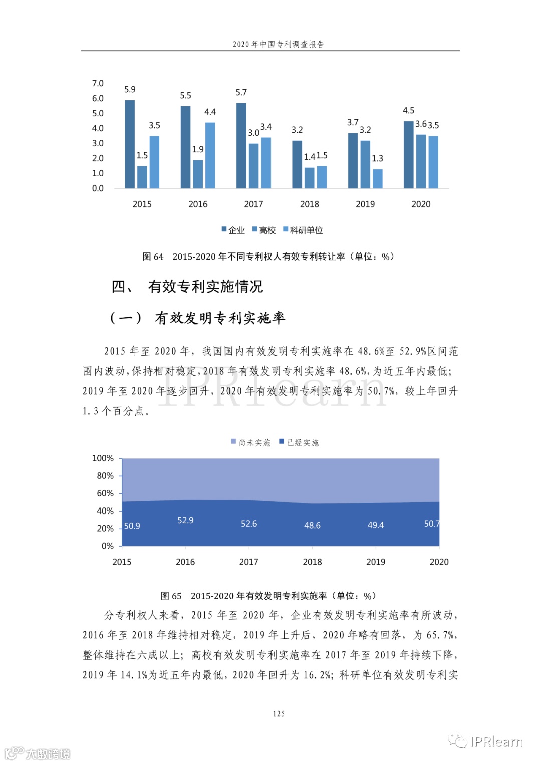 近日,国家知识产权局发布《2020年中国专利调查报告》(下文简称《报告》)。《报告》显示,2020年我国有效发明专利产业化率为34.7%,专利转移转化日趋活跃,专利保护成效显著、助力营商环境持续优化,专利研发投入较大提高、合作创新成为企业重要创新方式。调查主要结论如下: