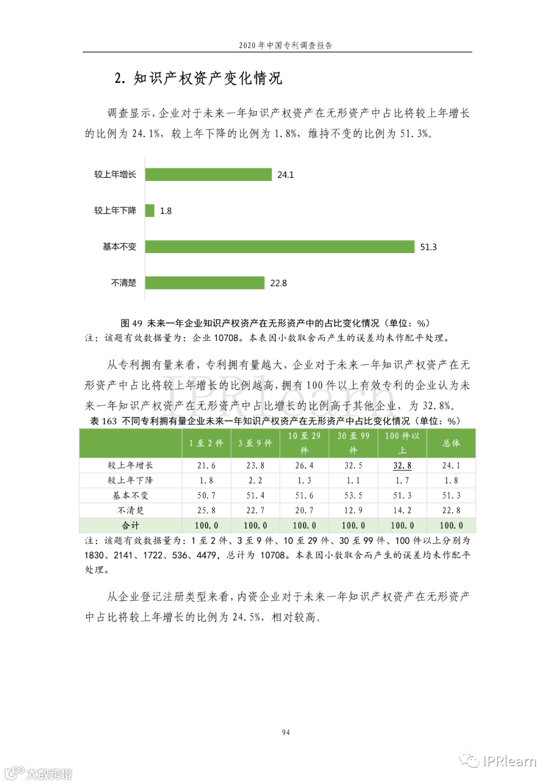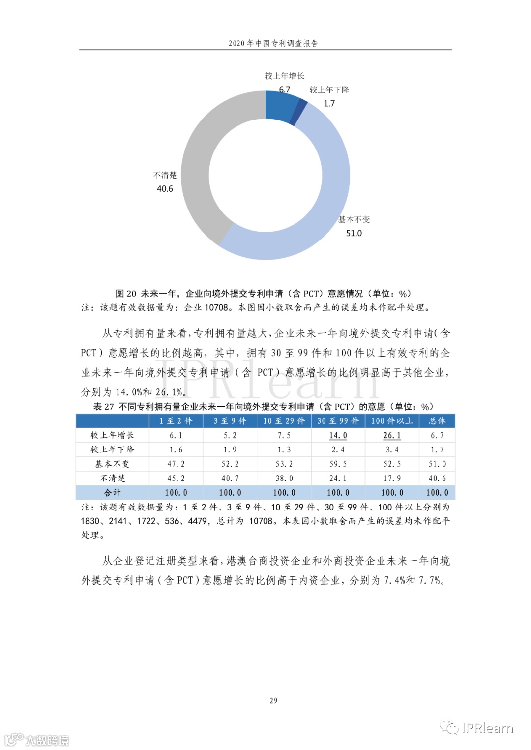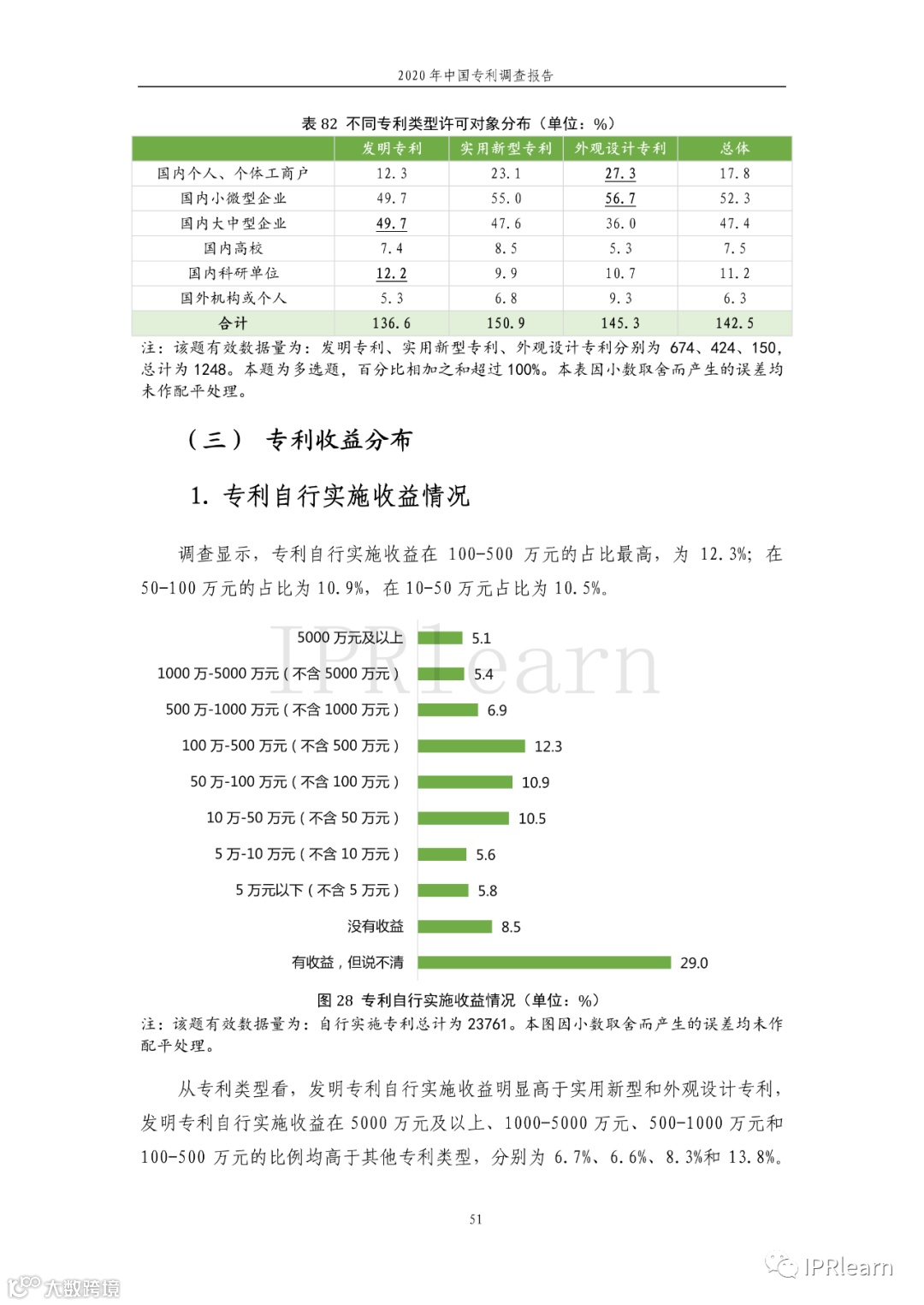 企业知识产权收益预期进一步增长。调查显示,近八成企业对未来专利收益情况有明确预期,在这些企业中,49.5%的专利权人预计未来一年专利实施收益将有所增长,45.5%预计收益基本不变,仅5.0%预计收益将有所下降。我国企业专利权人总体看好未来专利实施收益增长。