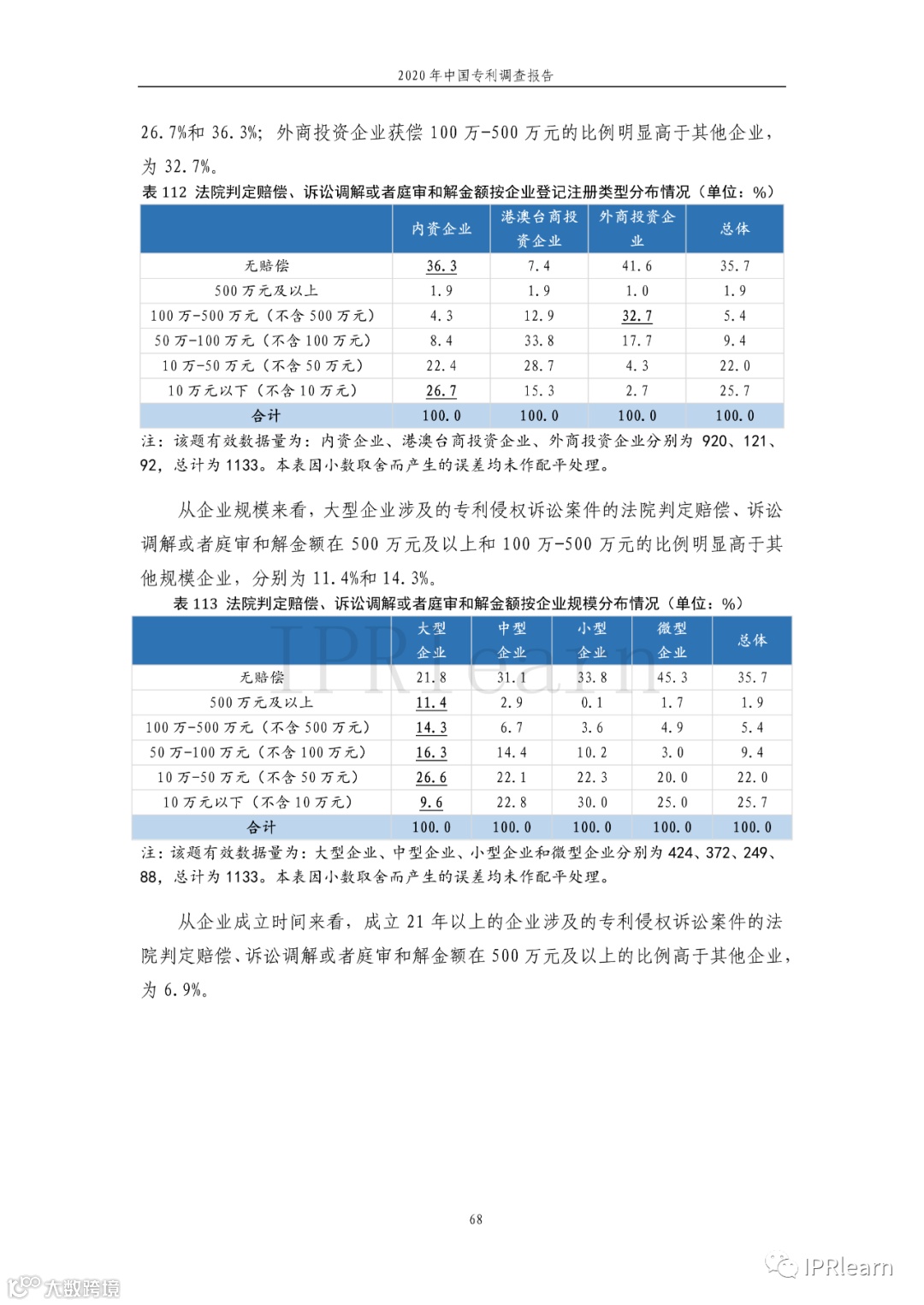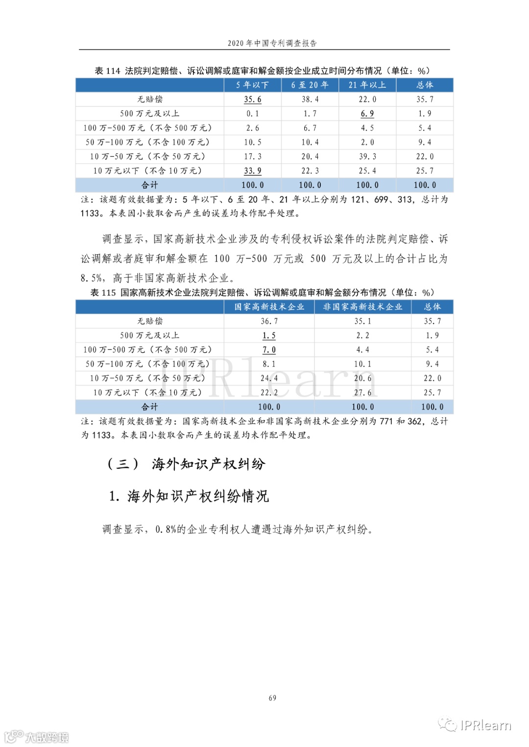 专利侵权违法成本不断提高。“十三五”时期,我国专利侵权诉讼法院判定赔偿、诉讼调解或者庭审和解金额在100万元以上的比例为7.3%,较“十二五”时期增长4.4个百分点,知识产权侵权违法成本不断提高。