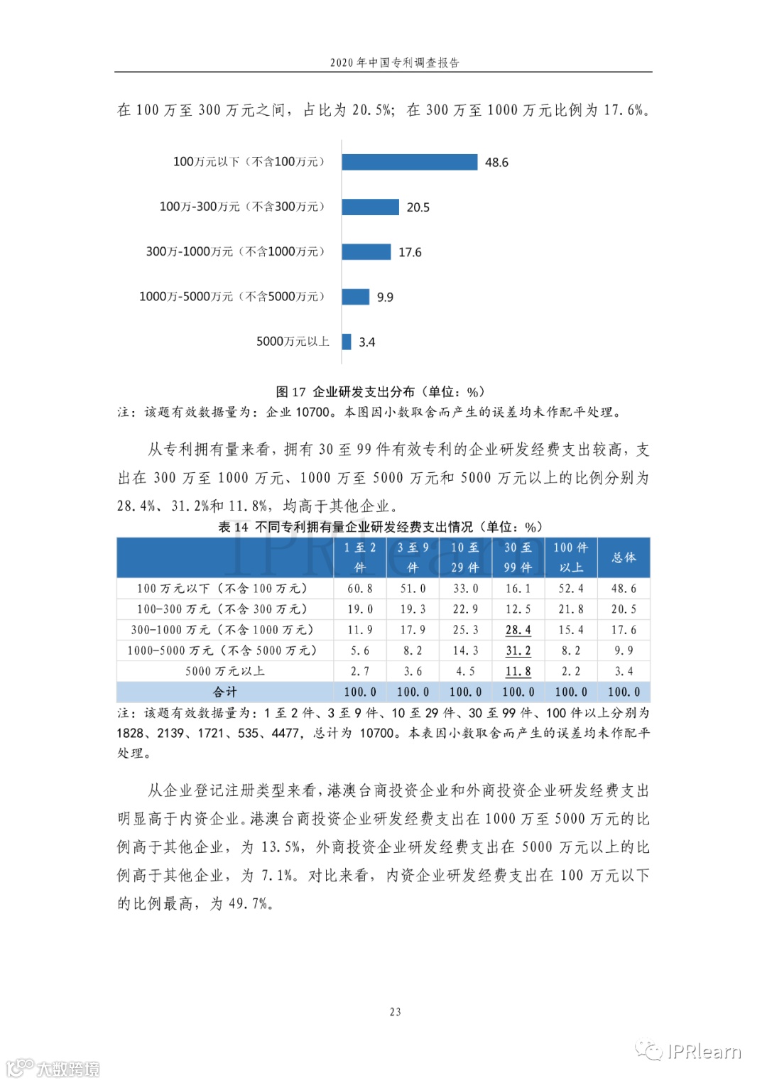 发明专利研发投入力度持续加强。2020年我国有效发明专利研发投入在100万元以上的比例为16.5%,较2019年高4.4个百分点。有效发明专利研发投入在10万元以下的比例较上年减少1.2个百分点,降至43.4%。