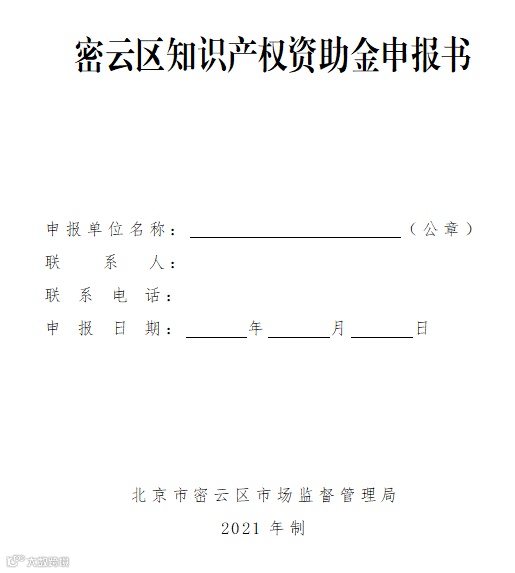 北京市密云区市场监督管理局关于申报知识产权资助金的通知