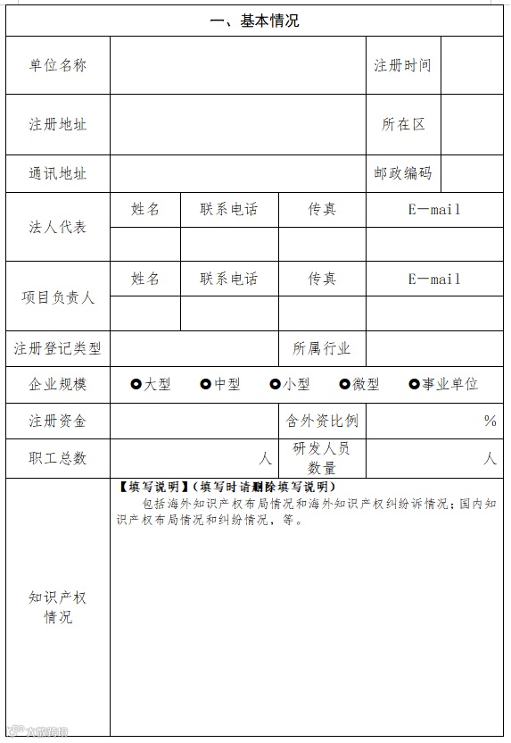 (一)企事业单位或社会组织需与知识产权服务机构联合申报。企事业单位或社会组织以及知识产权服务机构均只能申报一个项目。