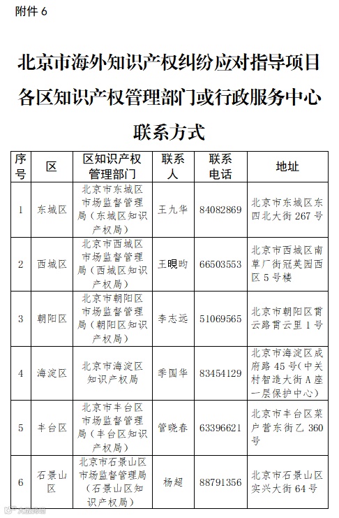 附件6.各区知识产权管理部门地址及联系方式.docx