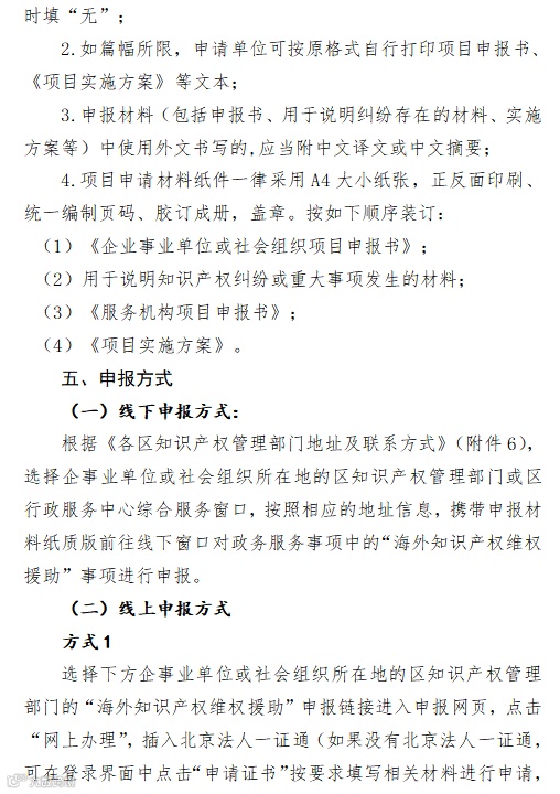 由企事业单位、社会组织或知识产权服务机构携带申报材料纸质版前往企事业单位或社会组织所在地的区知识产权管理部门或区行政服务中心综合服务窗口,对政务服务事项中的“海外知识产权维权援助”事项进行线下申报。