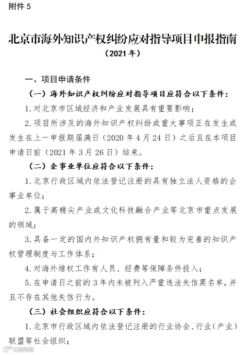 附件5.2021年度北京市海外知识产权纠纷应对指导项目申报指南.docx