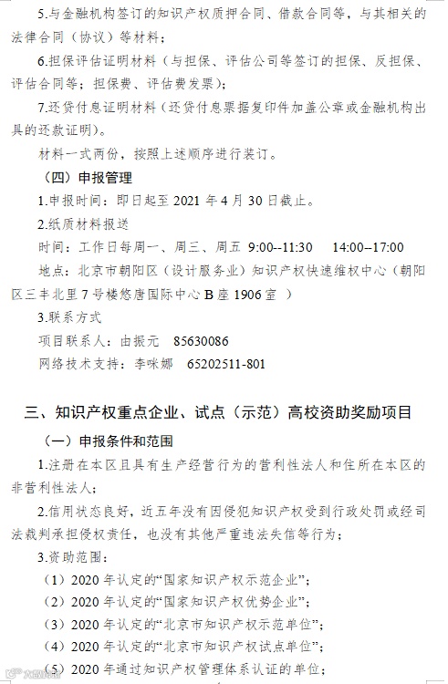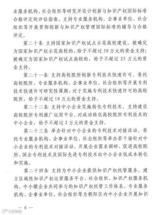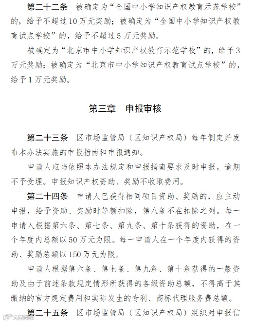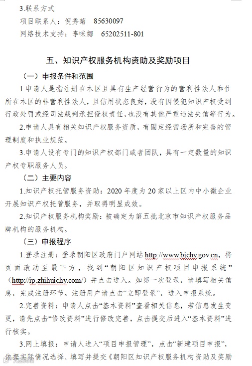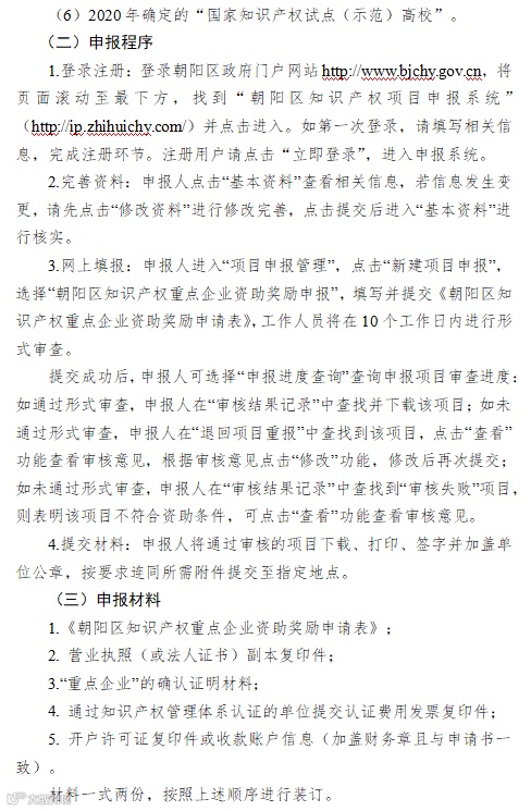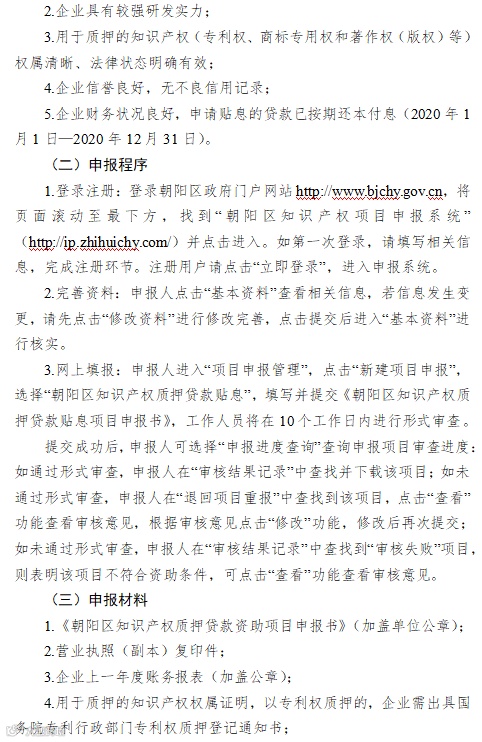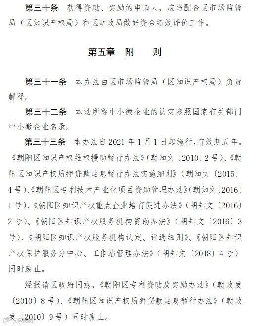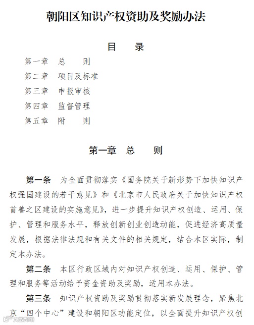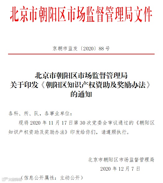 2.《朝阳区知识产权资助及奖励办法》(京朝市监发〔2020〕88号)