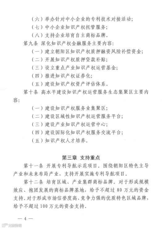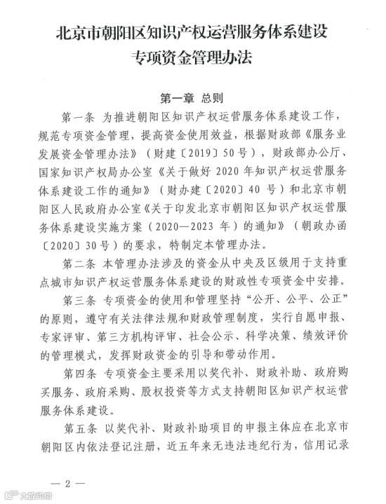 3. 《北京市朝阳区知识产权运营服务体系建设专项资金管理办法》(京朝市监发〔2020〕81号)